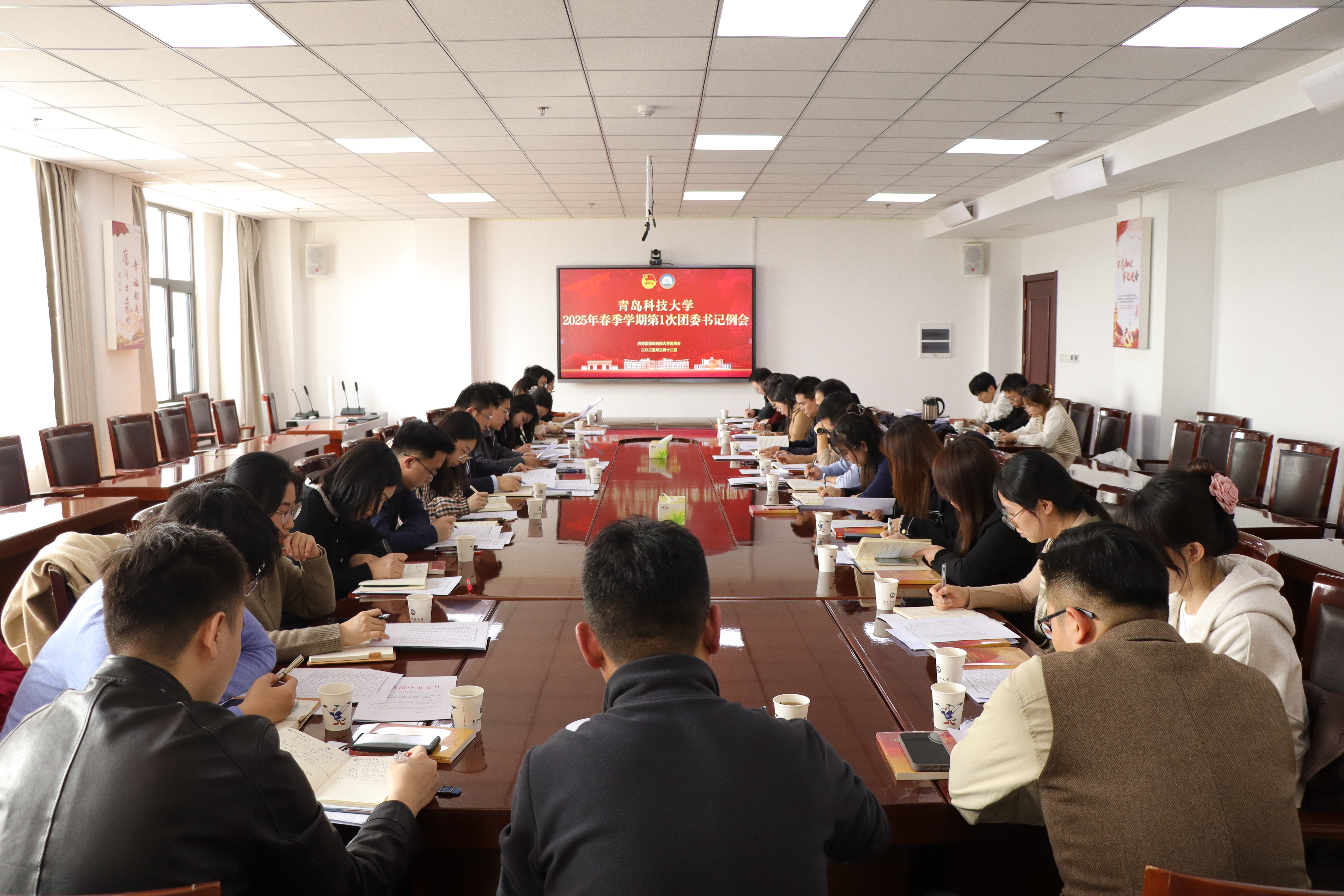 3月12日,2025年全校共青团工作会议在崂山校区综合服务楼3015会议室举行。校团委书记刘跃宁主持会议。