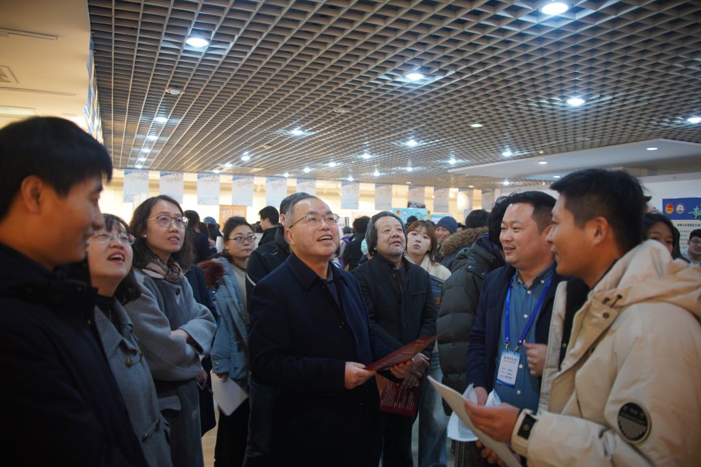 3月18日,传媒学院、艺术学院、外国语学院、体育学院在崂山校区美术馆举办“传”递未来·“艺”起就业·“语”你相约·“体”验职场2025年春季校园招聘会。学校党委常委、副校长丁林亲临招聘会现场,与用人单位及师生亲切交流,听取企业对学校人才培养的需求与建议。