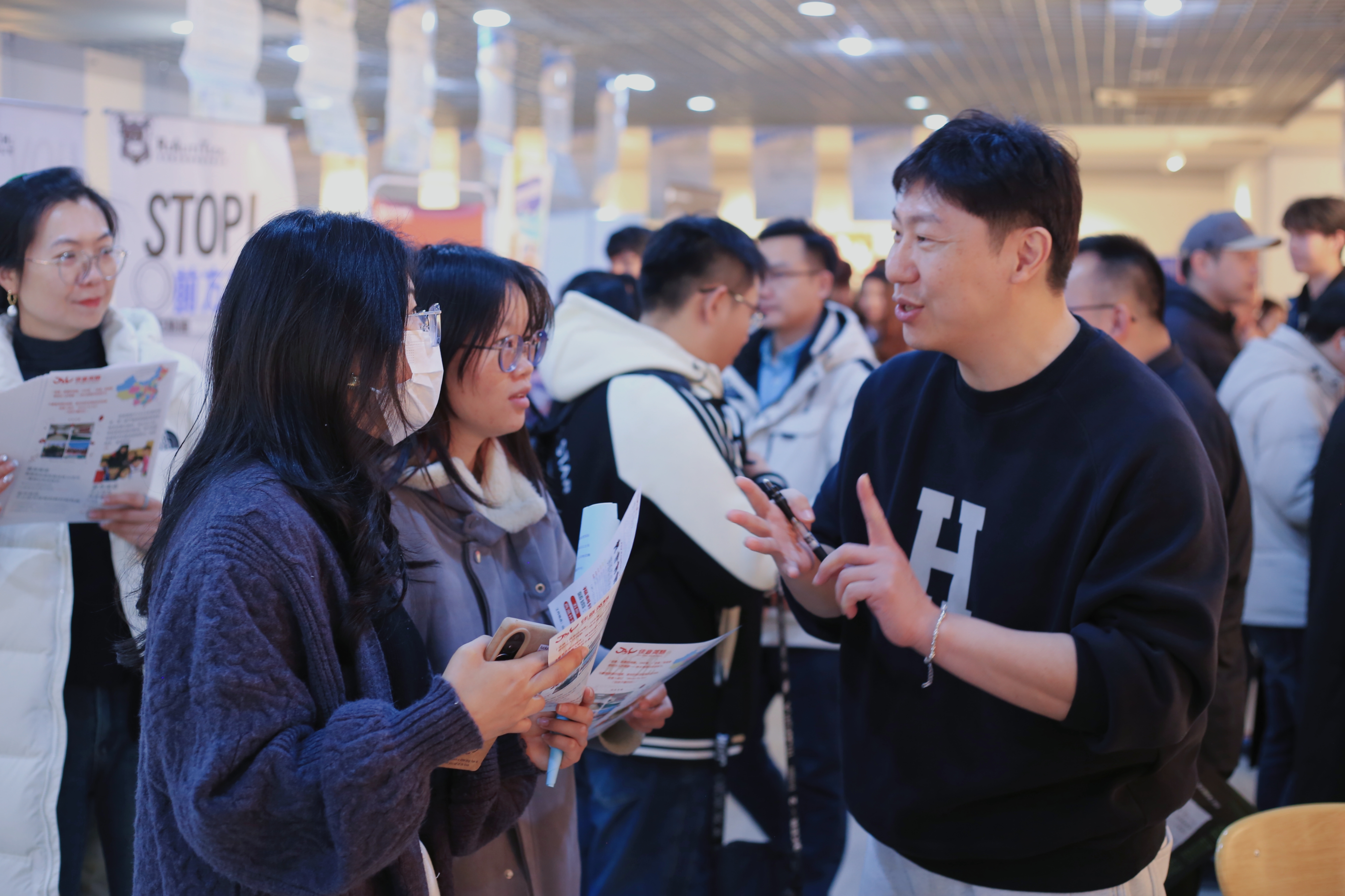 招聘会设置战略合作单位、校友企业专区、动画行业专区等区域,大家围绕校企科研合作、人才培养及产学研融合等深化交流合作;现场还设置了征兵入伍、青鸟计划、西部计划政策咨询处,“零距离”为毕业生提供政策讲解、求职帮扶等就业服务。此外,本次招聘会创新采用“直播带岗+云端交流”双轨模式,实现线上线下精准匹配。招聘会前后,四学院与10余家用人单位开展了专场宣讲与面试,并洽谈校企合作事宜。
