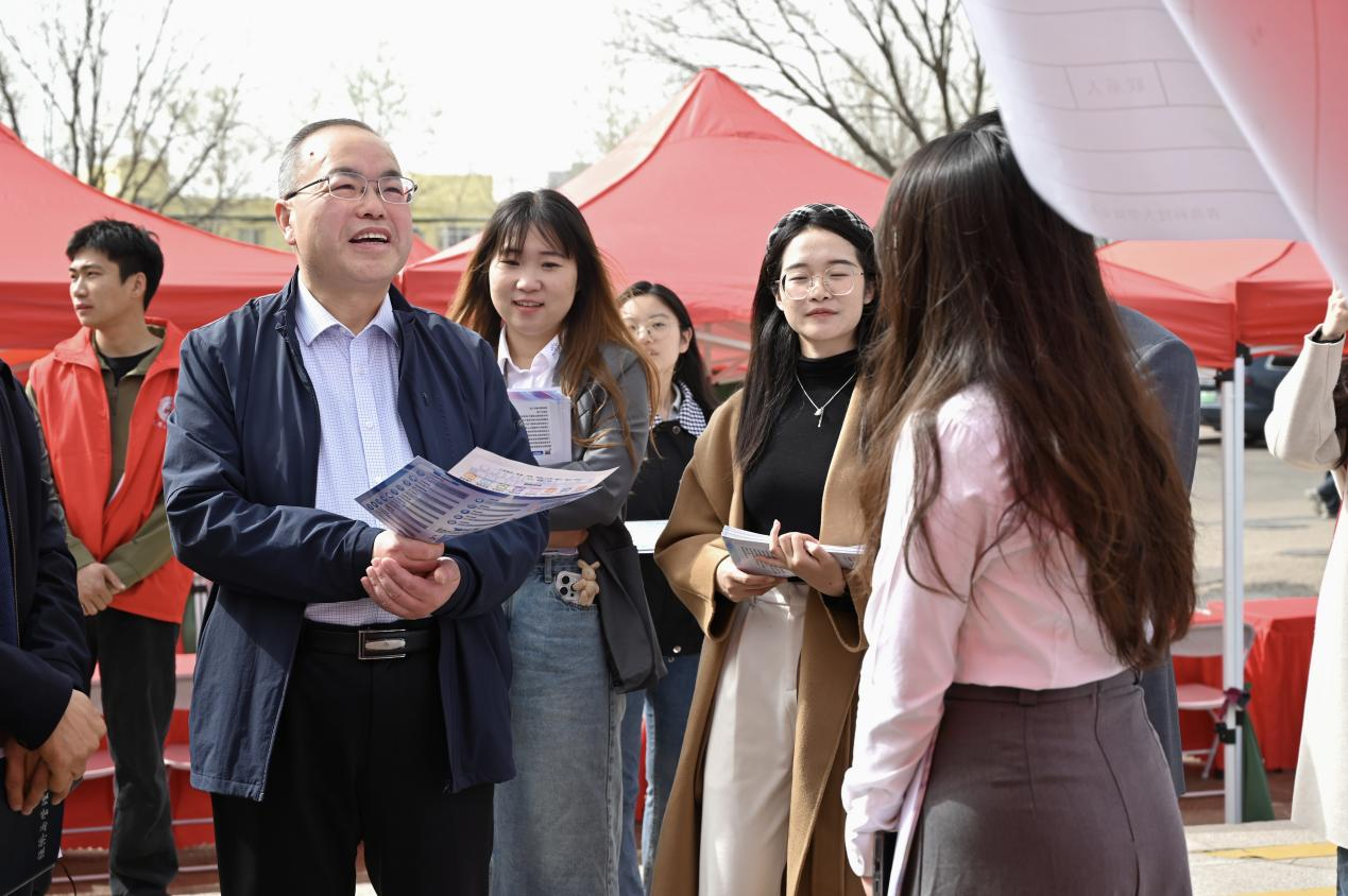 3月25日,经管学院、法学院、马克思主义学院在崂山校区弘毅广场联合举办2025年春季校园招聘会。学校党委常委、副校长丁林亲临招聘会现场,听取企业对复合型人才培养的建议,并就校企共建实习基地、推动产学研项目合作等进行交流。