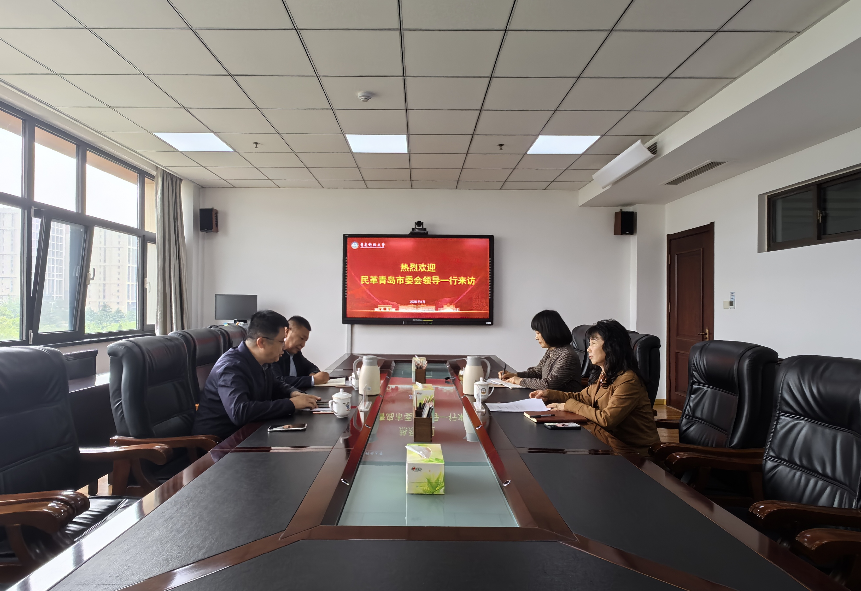 5月14日,民革青岛市委会专职副主委、秘书长石硕,民革青岛市委会副秘书长、组织处处长卢忠伟来校调研交流。学校党委副书记沈文青,党委常委、统战部部长秦姣出席座谈会。