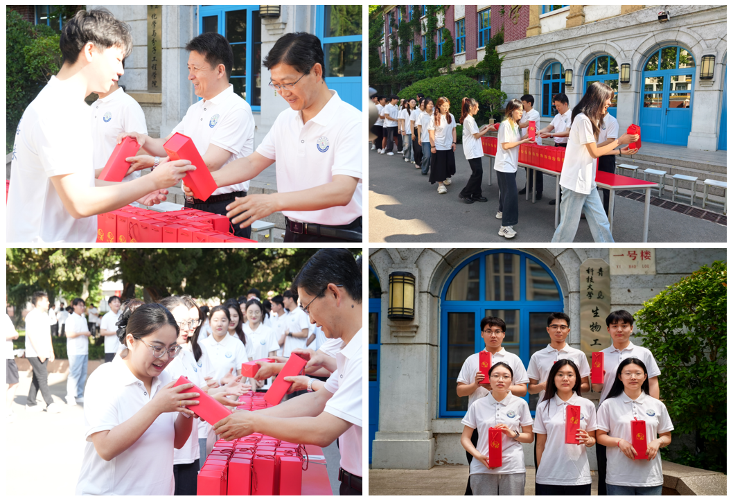 礼赠印记,杯衫寄长情。学院邀请校党委常委、副校长吴明铂与学院领导班子一同为毕业生发放满载学院心意的定制毕业礼物——文化衫与保温杯,礼物承载的情意重若千钧,它是四年青葱岁月的珍贵信物,是连接学子与母校的永恒纽带。学院领导班子、全体辅导员走进毕业生宿舍,为毕业生们送上清凉解暑的水果,传递学院的深切关怀。