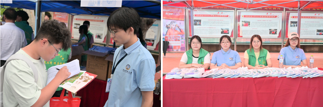 遇见化学启新程。学院在迎新点引导新生关注“微观化院”微信公众号,并邀请新生和家长在“你好,锌铜学!”主题喷绘前留影,镌刻下踏入青科大的第一份纪念。现场还举办“青春寄语”活动,引导新生与家长共同书写梦想明信片,等待四年后启封验算成长的轨迹。