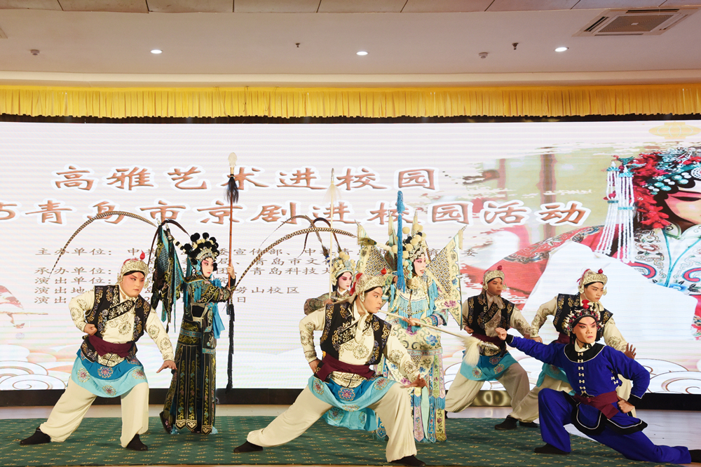 11月11日下午,“高雅艺术进校园”2025青岛市京剧进校园活动在崂山校区举行。青岛演艺集团主要负责人张伟,青岛市京剧院院长张欣,学校党委常委、宣传部部长张洪坤出席活动。