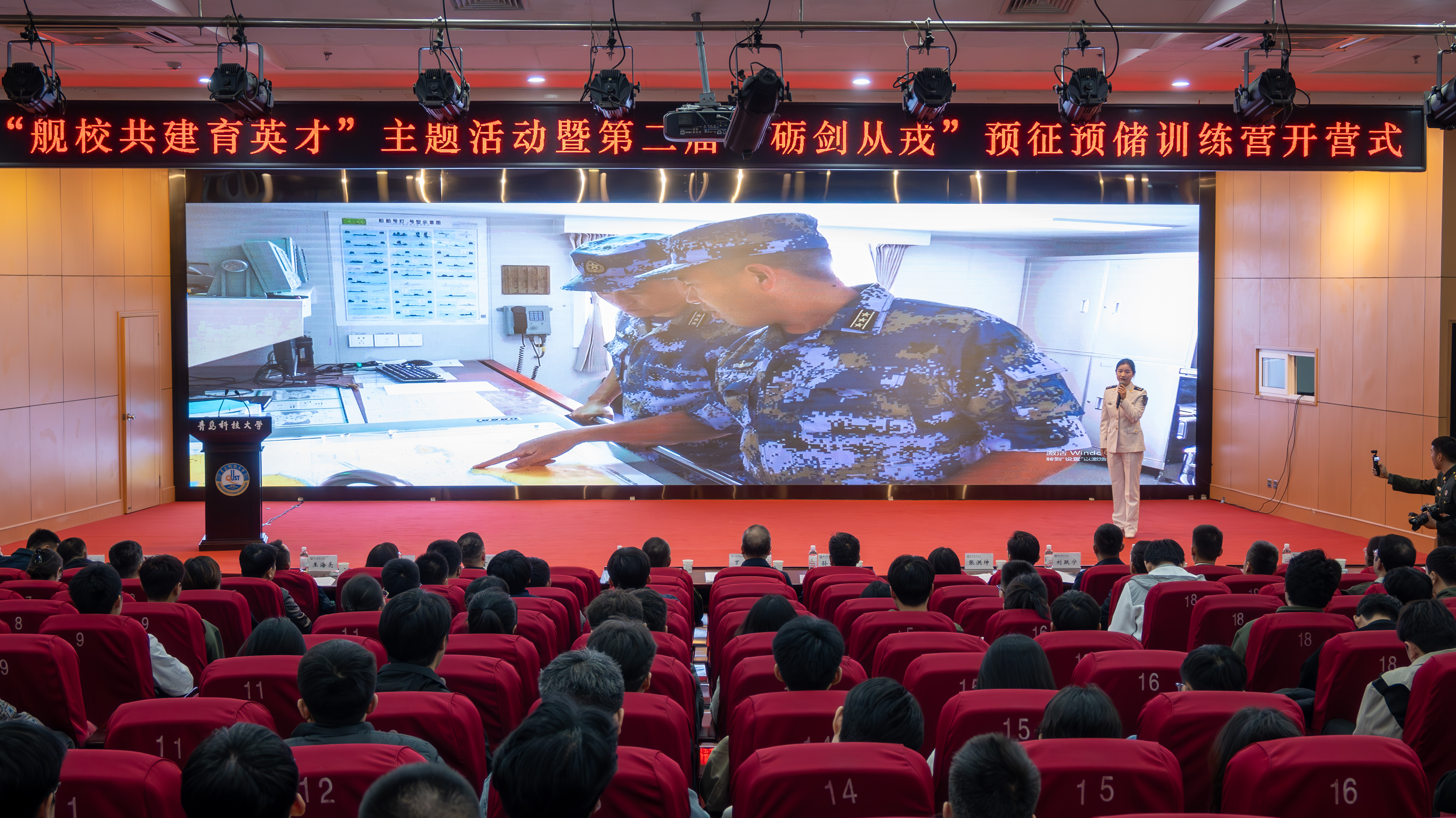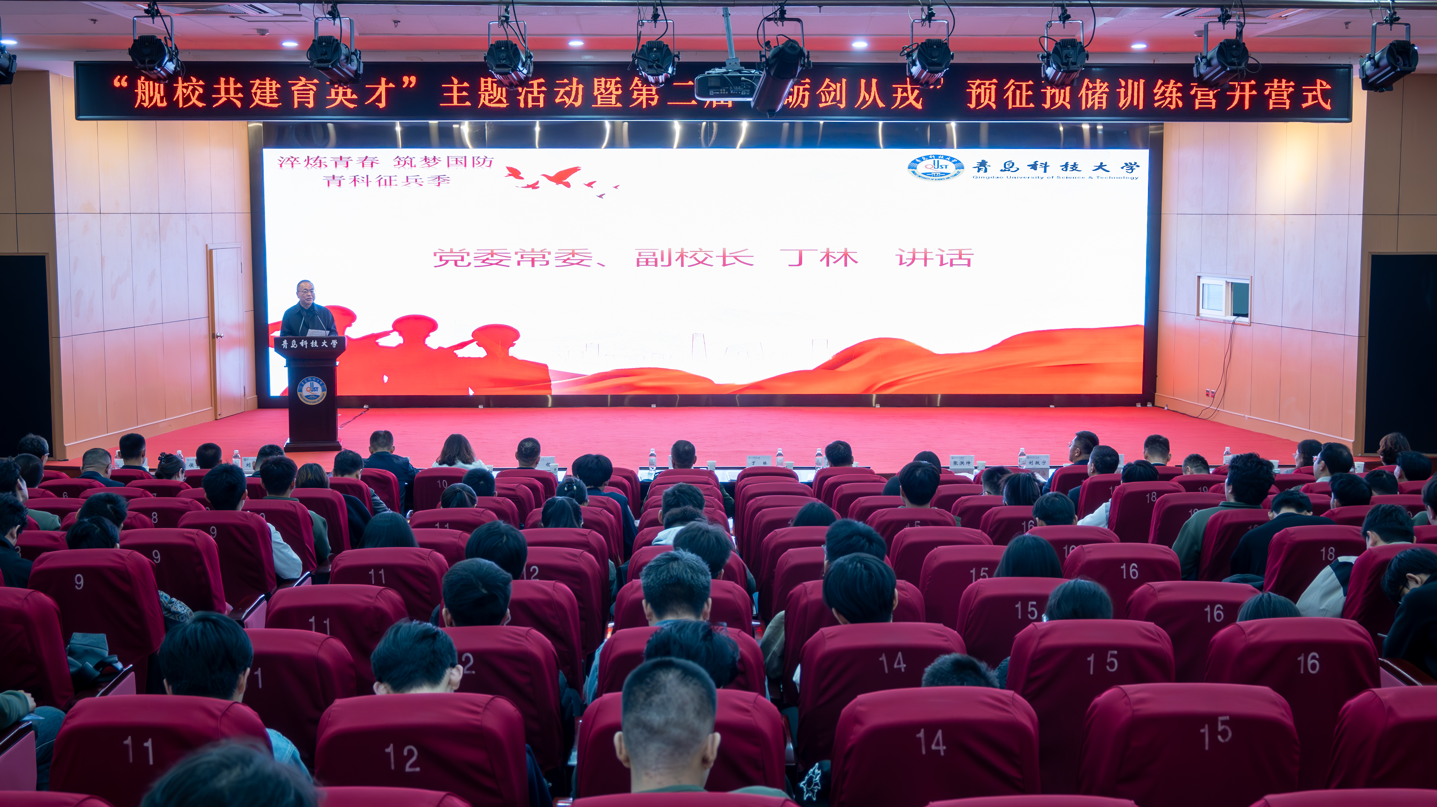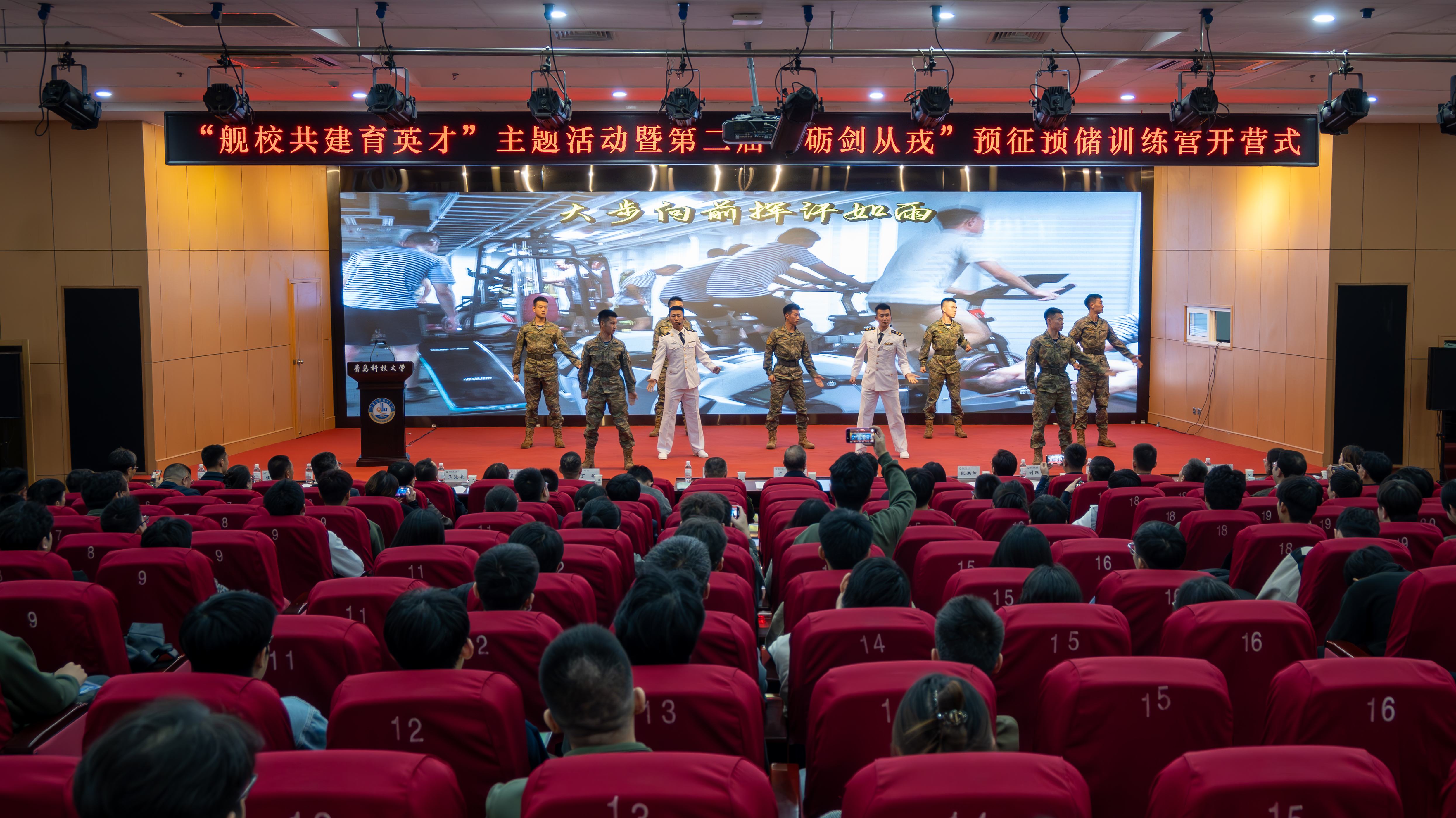 11月12日,“舰校共建育英才”主题活动暨第二届“砺剑从戎”预征预储训练营开营仪式在崂山校区举行。青岛警备区动员处处长王庆涛,青岛市退役军人事务局秘书处处长孙九超,海军可可西里湖舰政治委员丁锐,学校党委常委、副校长丁林,党委常委、宣传部部长张洪坤等出席活动。