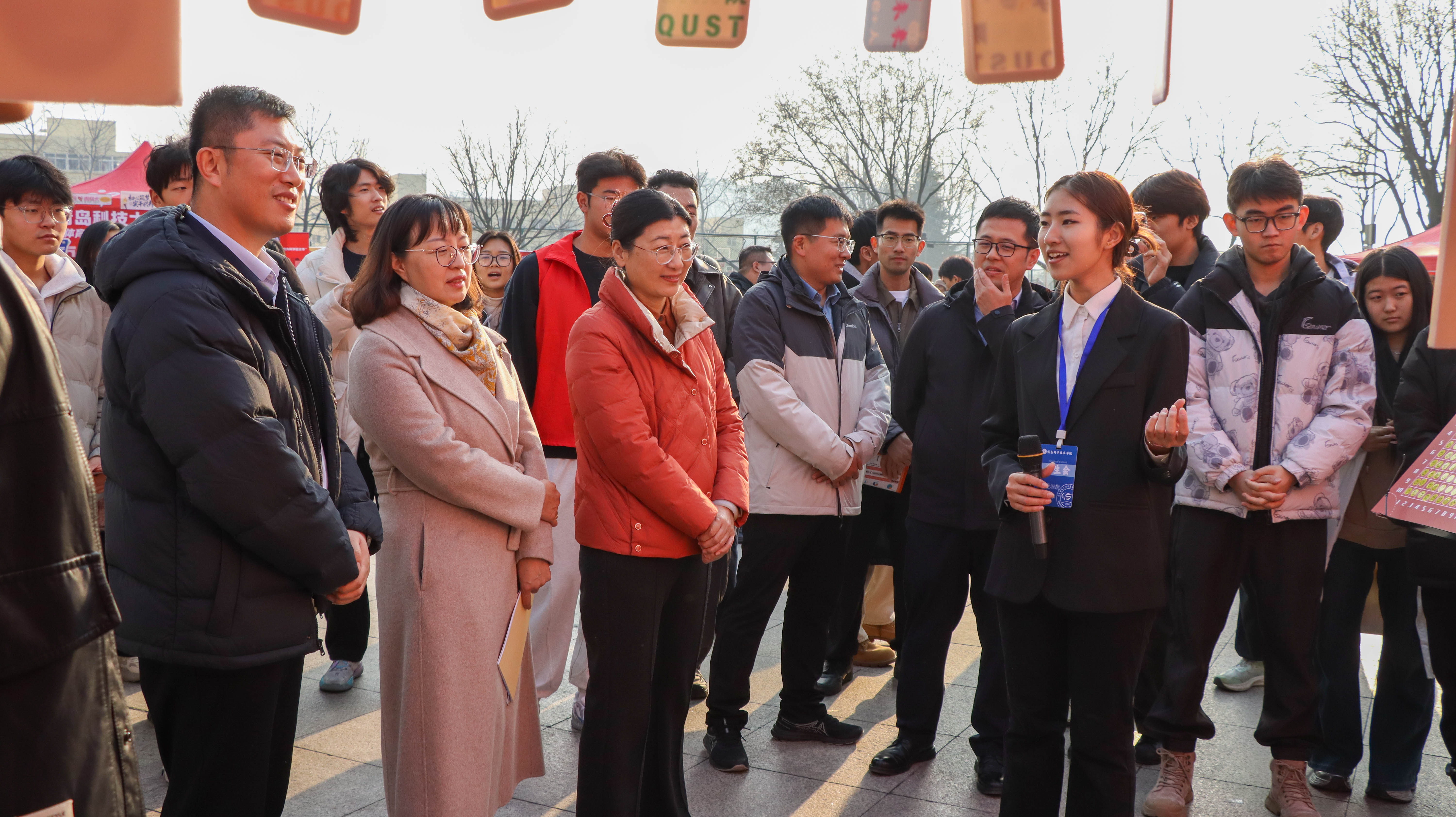 12月16日,学校学生会、研究生会2025年度“我为同学做实事”项目交流活动在崂山校区弘毅广场、四方校区小五四广场同步举行。党委常委、副校长王震出席活动。