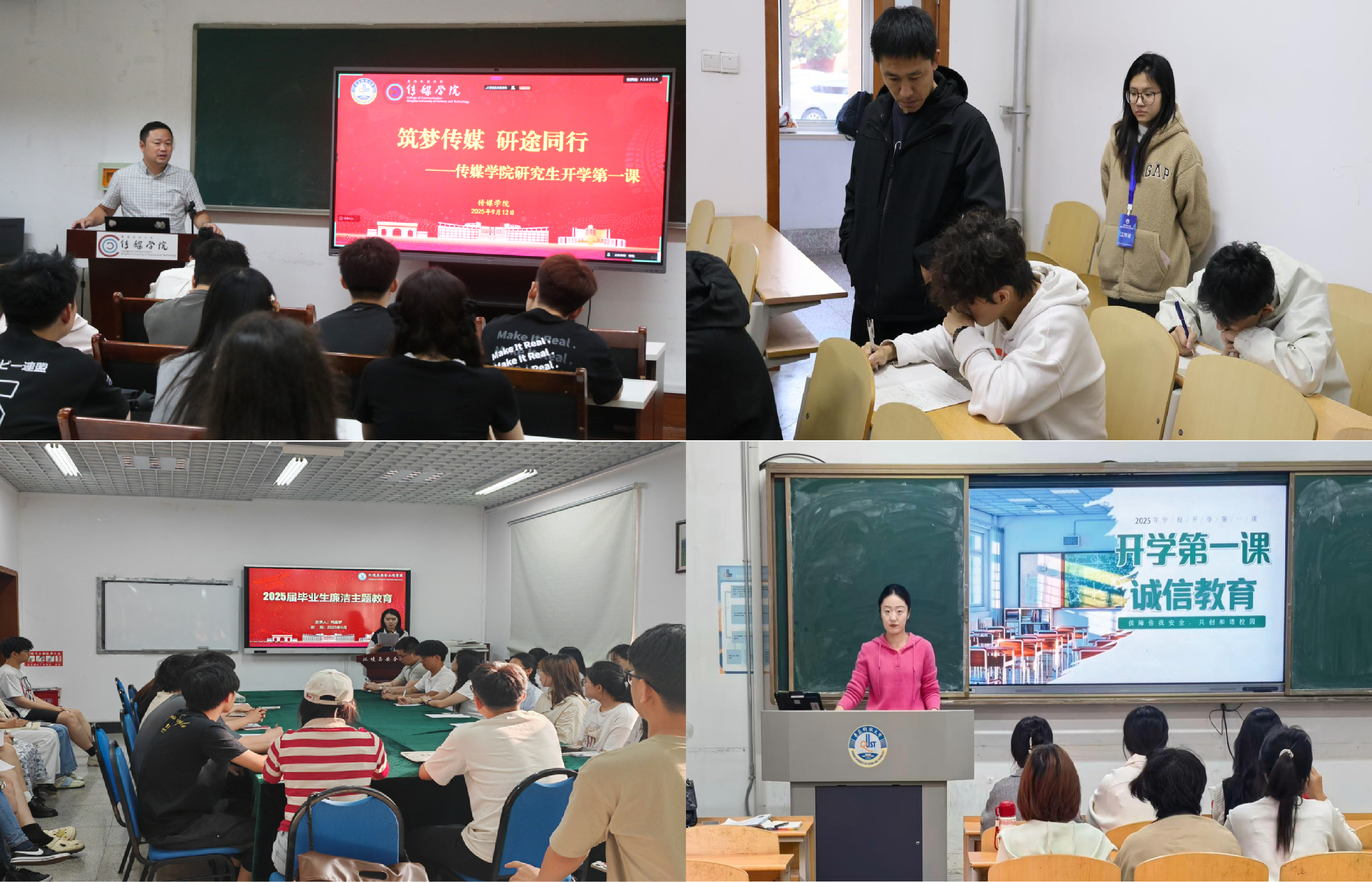 信息学院以期末考试月为契机,举办“文明考风,诚信考试”主题教育,面向全体学生干部重点解读学校考试纪律条款,要求班团干部不断强化自我约束力,端正考风考纪,发挥骨干带头作用。高密校区通过常态化开展考风考纪教育大会、组织签订诚信考试承诺书等一系列举措,持续强化诚信教育,营造了风清气正的考试环境。自动化学院成立由班主任、辅导员组成的多层级巡考督导组,制定详尽巡考计划,进考场践行一线规则,同时设立考风考纪监督举报渠道,对任何形式的舞弊行为坚决做到“零容忍”。化学院采用“一次诚信宣誓、一场案例研讨、一份承诺签署”的“三个一”形式,组织班主任召开诚信考试主题班会,严肃考风考纪,引导学生树立“诚信学习、真实应考”的正确价值观。