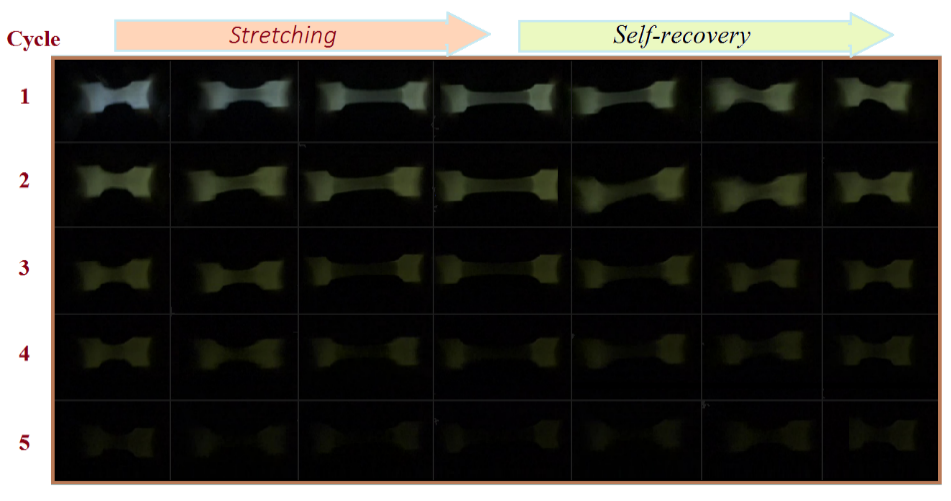 图2动态形变下光激活热塑性弹性体材料的延迟余辉照片.