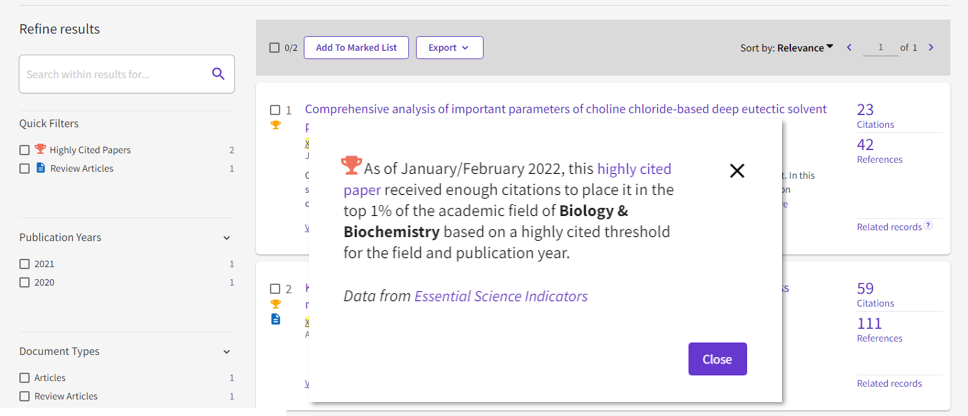 近日,据Web of Science数据库2022年最新检索报告显示,化工学院徐环斐副教授团队的两篇学术论文同时入选ESI“世界前1%高被引论文”。世界前1%高被引论文(ESI Highly Cited Papers)指近10年内发表且在同年度同学科领域中引文影响力排在前1%的论文,是衡量高校学术影响力的重要标志之一。研究内容属于生物质化工领域,围绕基于低共熔溶剂预处理的木质纤维素类生物质的高值化利用展开。两篇学术论文均是发表在该领域国际知名期刊BIORESOURCE TECHNOLOGY(中科院一区TOP期刊,影响因子为9.642)。两篇论文中,万象城allwincity官网均为第一单位和唯一通讯单位。