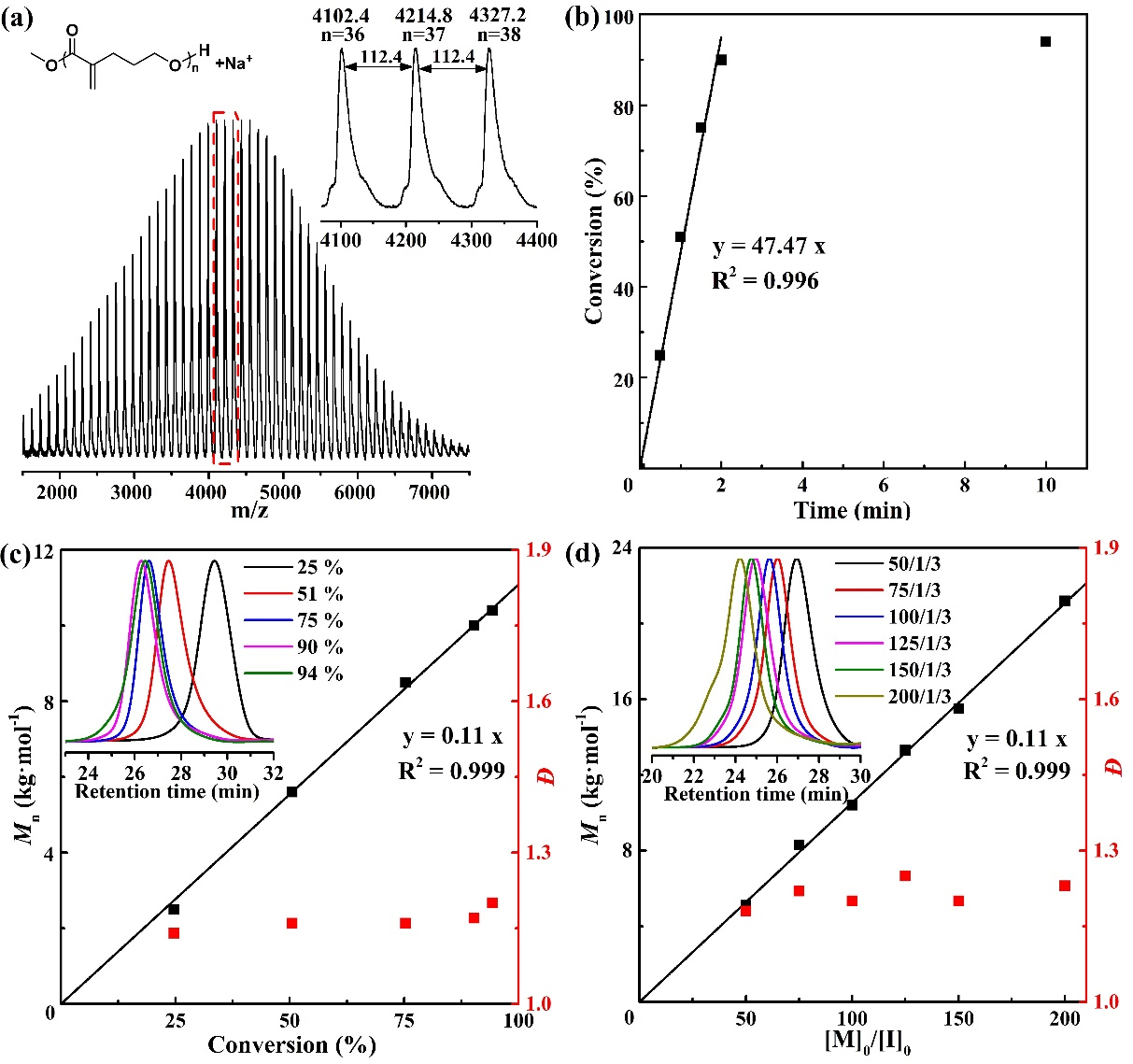 以辛酸亚锡为催化剂,得到的聚酯产物P(MVL)ROP在130 °C下通过减压蒸馏可以完全解聚回收得到高纯度的MVL(产率~96%)。将回收单体使用CaH2简单干燥后,可以重新聚合得到P(MVL)ROP,从而成功建立“单体-聚合物-单体”的闭合循环生命周期。