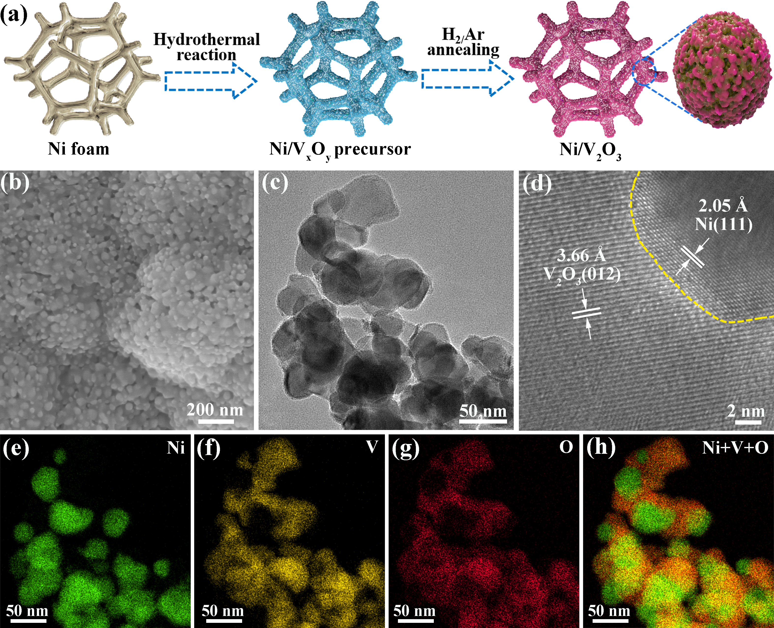 图1三维Ni/V2O3肖特基电极的构筑