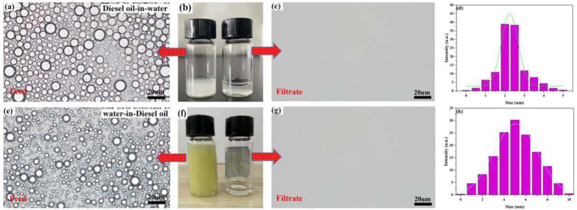 最后,作者通过探索分离水包油乳液,油包水乳液的分离过程,确定了HCPIL-TF2N材料具有最强的分离效果及其分离通量,对于含油乳液的分离效果都高达95%以上。