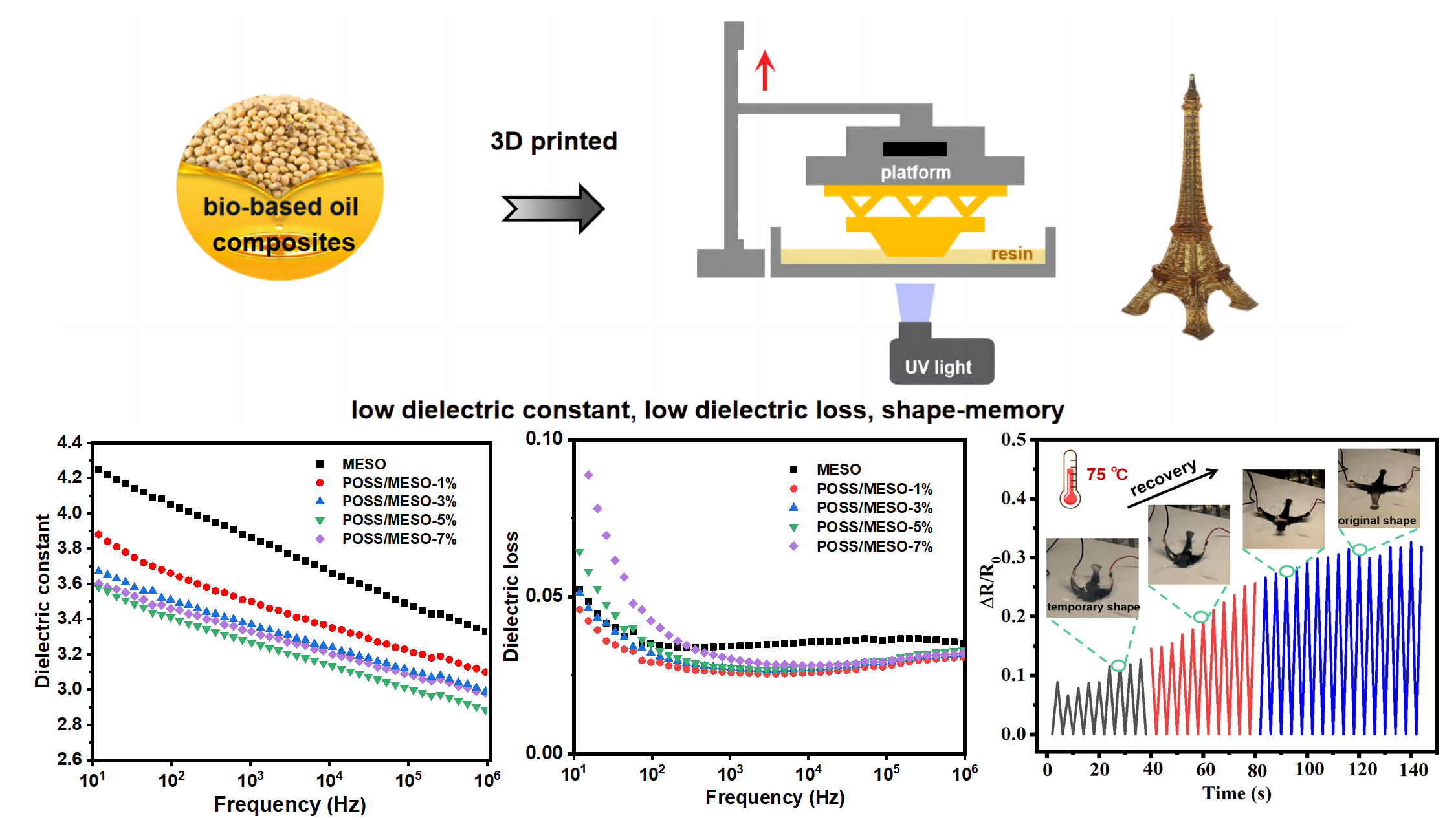 图2 POSS/MESO复合材料具有可3D打印、低介电、形状记忆、传感等多功能
