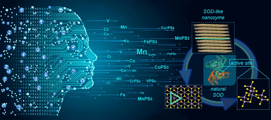 此外,本团队围绕着机器学习纳米酶设计开展了大量的研究。如本团队报道了利用机器学习这一工具发现一种活性为天然超氧化物歧化酶12倍的类超氧化物歧化酶纳米酶硫化磷锰晶体(MnPS3),能有效去除小鼠病灶皮肤毛囊深层的活性氧,在动物实验上对雄激素性脱发 (AGA)这一疾病显示出十分良好的疗效。该工作发表在《Nano Letters》(中科院一区TOP期刊,影响因子12.262),题为“Machine Learning Guided Discovery of Superoxide Dismutase Nanozymes for Androgenetic Alopecia”。环境学院研究生张超慧为第一作者,王丽娜副教授、朱之灵副教授为共同通讯作者,万象城官网均为第一作者及第一通讯单位。