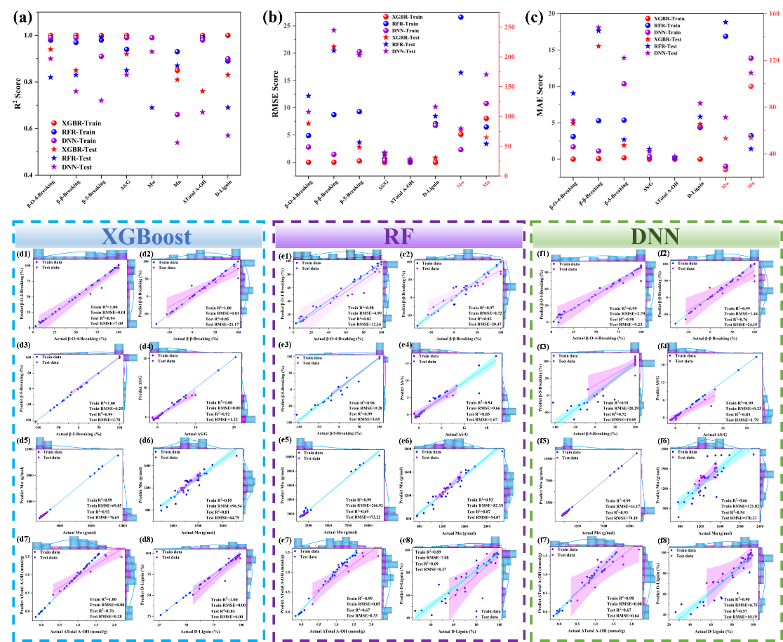 近日,化工学院青年教师徐环斐副教授团队在基于人工智能机器学习的低共熔溶剂体系木质纤维高值化利用研究领域取得新进展。相关研究成果以“Machine learning prediction of delignification and lignin structure regulation of deep eutectic solvents pretreatment processes”为题目,发表在生物质化工研究领域国际知名期刊Industrial Crops & Products (SCI一区TOP期刊),论文DOI链接为doi.org/10.1016/j.indcrop.2023.117138。论文基于机器学习研究了含路易斯酸的三元低共熔溶剂预处理木质纤维素类生物质过程中生物质的结构参数、溶剂物理化学参数和预处理条件与木质素脱除效率之间的内在关系,揭示了相互作用机制。采用多种机器学习模型以木质素的结构参数为目标变量进行了预测,模型具有较高的精准度。论文第一作者为化工学院2022级硕士研究生葛瀚文,通讯作者为徐环斐,万象城allwincity官网为第一单位和唯一通讯单位。