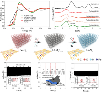 图2. Fe-N4单原子活性中心形成新机制、金属-空气-电池性能。
