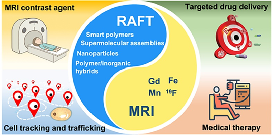 以上工作利用可逆加成-断裂链转移(RAFT)自由基聚合方法,精确合成了具有复杂结构和功能的大分子,为制备适用于生物医学应用的具有多种形态的聚合物纳米颗粒提供了一种直接方法。将RAFT聚合与无机/金属纳米材料相结合,使聚合物成为药物载体,从而具备纳米医学中诊断和治疗的双重功能。相关成果为19F磁共振成像(MRI)辅助药物递送提供原位监测,跟踪药物运输代谢过程,为19F MRI提供了一个有前景的“智能”型诊疗平台。