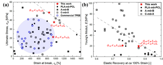 随着时代的发展,现代社会对材料可循环、可降解、可再生的要求日益提高,生物可降解热塑性弹性体也成为近年来高分子材料领域的一大研究热点。但相较于传统弹性体材料,生物可降解热塑性弹性体在强度、韧性、回弹性等方面还需要进一步提升,因此,开发新的材料构筑方式和策略显得尤为关键。