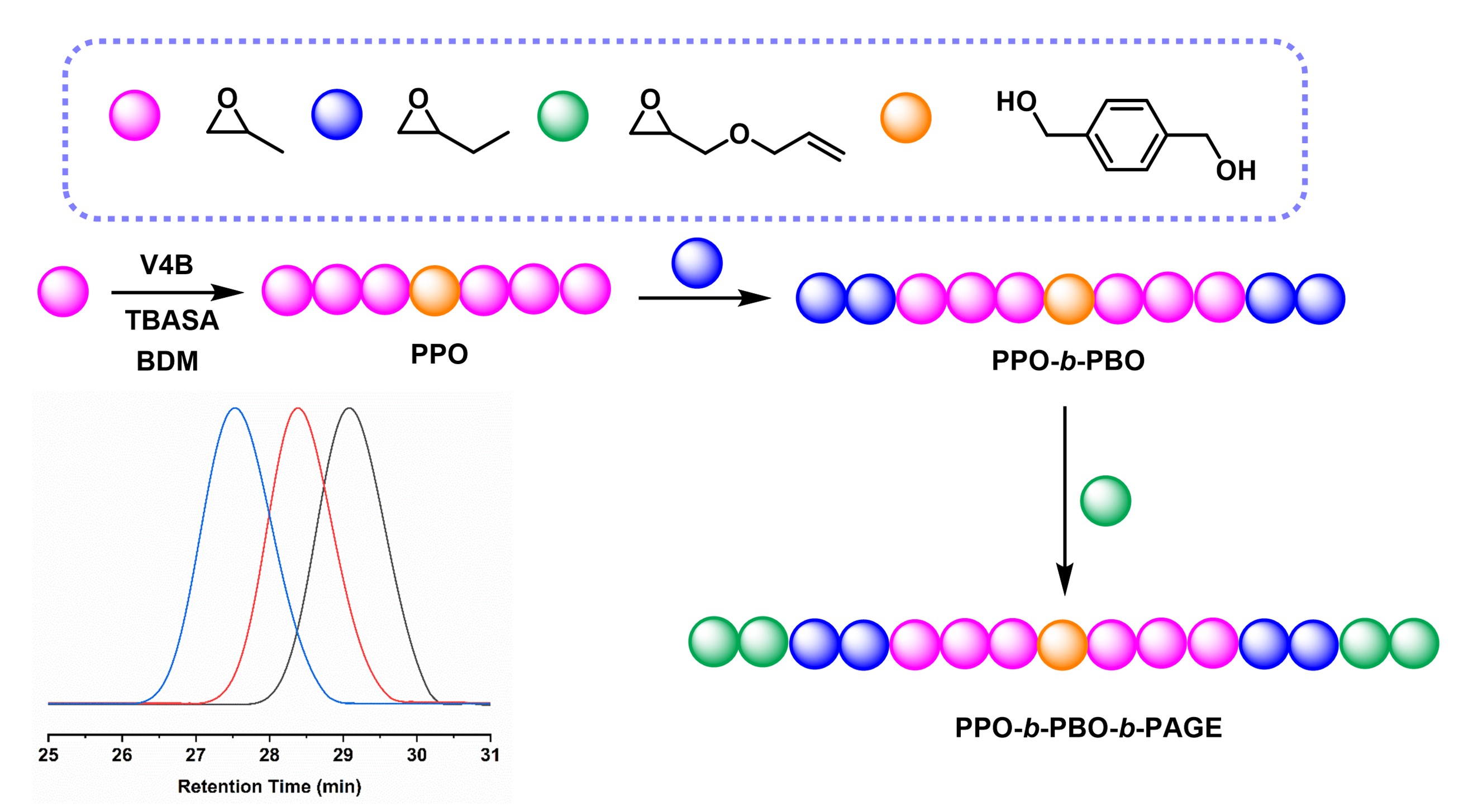 图10.V4B/TBASA一锅法合成五嵌段PAGE-b-PBO-b-PPO-b-PBO-b-PAGE聚醚
