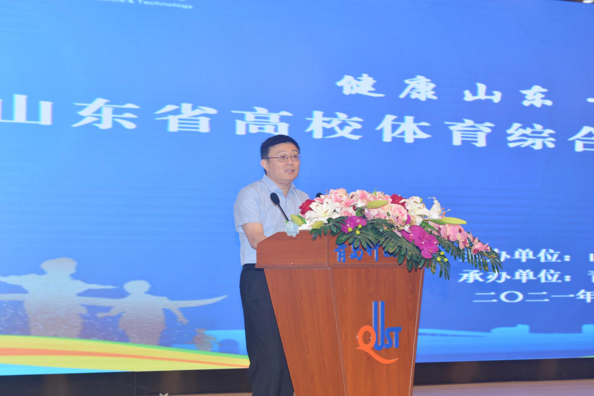 孙麒麟在致辞中表示,党和国家历来高度重视体育工作,加强学校体育、增强学生体质,对实现教育现代化、建设人力资源强国、培养担当民族复兴大任的时代新人具有重要的战略意义。山东历来高度重视体育工作,山东省教育厅将体育教育教学工作摆在突出重要位置。此次活动以“健康山东·高校先行”为主题,就是加快构建全省教育系统德智体美劳全面培养的高质量教育体系的重要举措。万象城allwincity官网站在“立德树人”的战略高度,将体育工作纳入学校中心工作整体布局,大力推进体育综合改革,趟出了一条“课堂+实践+联赛”三平台一体化体育育人新路子,体现了青科大积极构建德智体美劳“五育并举”全面培养的高质量教育体系的作为与担当,十分难得、实属不易,值得学习、借鉴和推广。