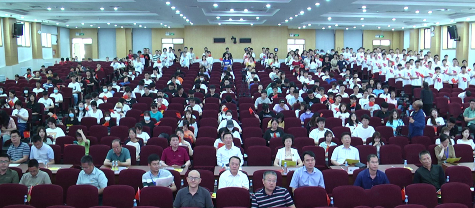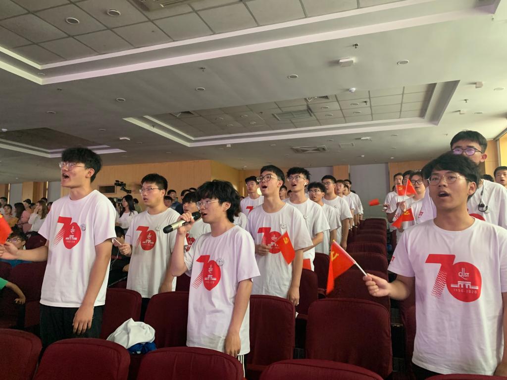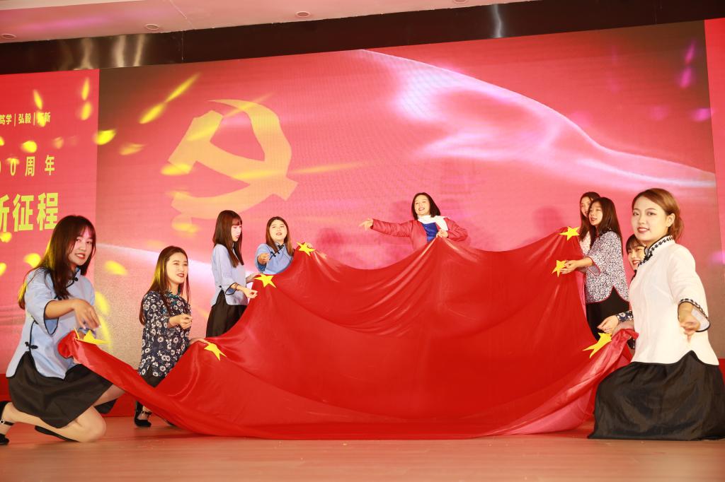 演出开始前,经济与管理学院、信息学院的学生代表手持小党旗在现场进行了红歌拉歌活动,唱出了新时代青年对党的忠诚、对祖国的热爱。