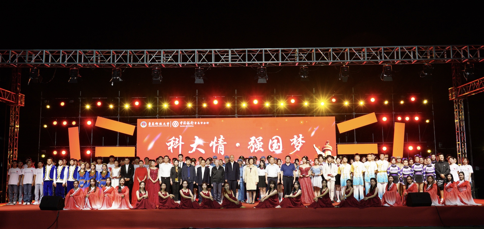 9月28至29日,“科大情·强国梦”2021年迎新生庆国庆师生文艺晚会分别在四方校区西礼堂和崂山校区体育场隆重举行。晚会开始前,党委书记马连湘向全体2021级新生表示欢迎和问候,向受表彰教师典型表示祝贺。校长陈克正,中国工程院院士、学校电工材料研究院院长雷清泉,学校党政领导班子成员张淑华、姚锋、李勇、吕万翔、丁林、聂法良、陈刚、张洪坤,中国银行青岛分行团委书记谭丽娜出席晚会。
