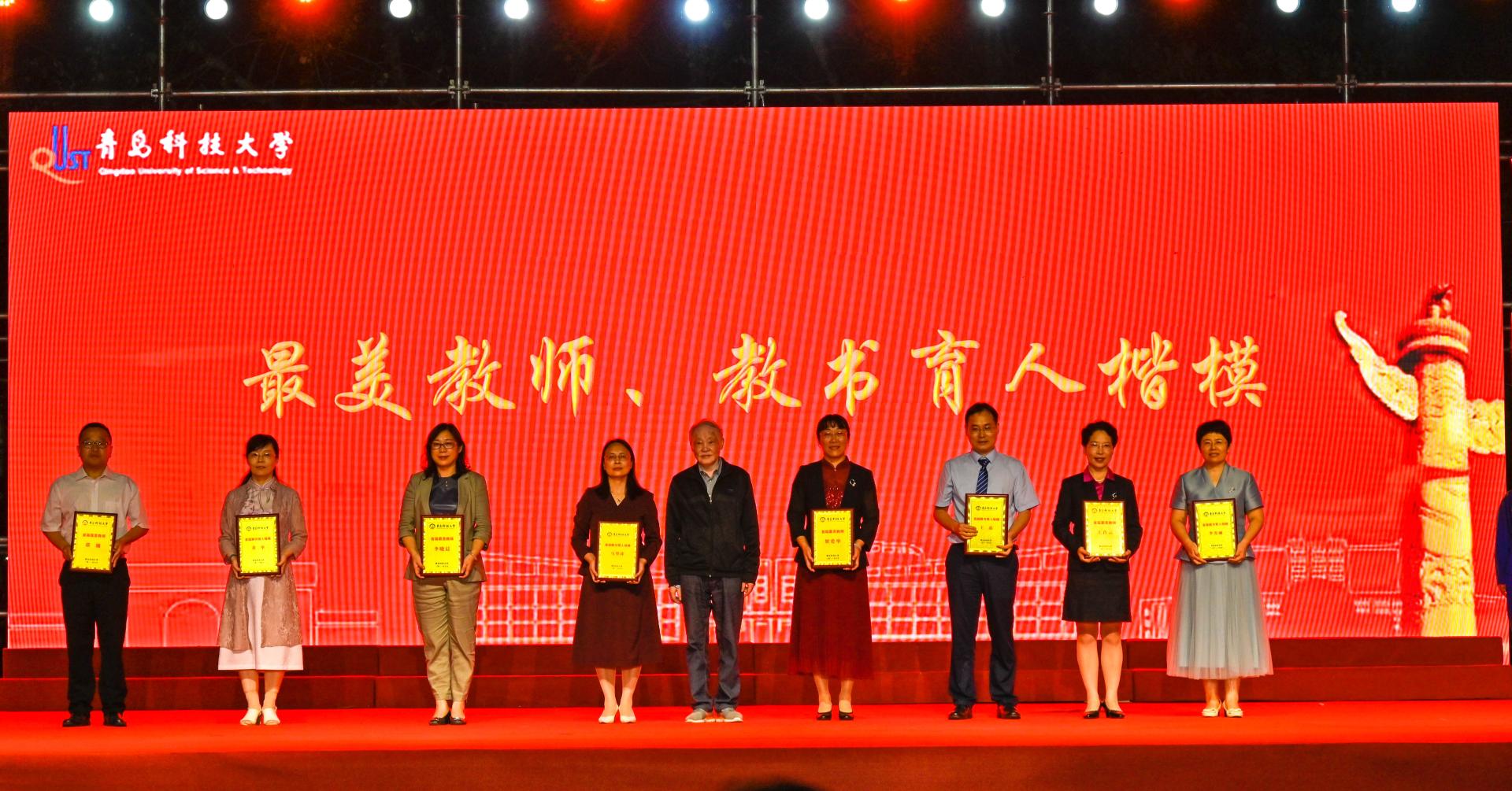 中国“橡胶战线”老兵、轮胎先进装备与关键材料国家工程实验室主任汪传生,第14届十大杰出青年、自主导航与智能控制研究所副所长邵巍,最美教师、化工学院副院长兼高密校区化工系主任王许云分别作为获奖教师代表为新生送上祝福。