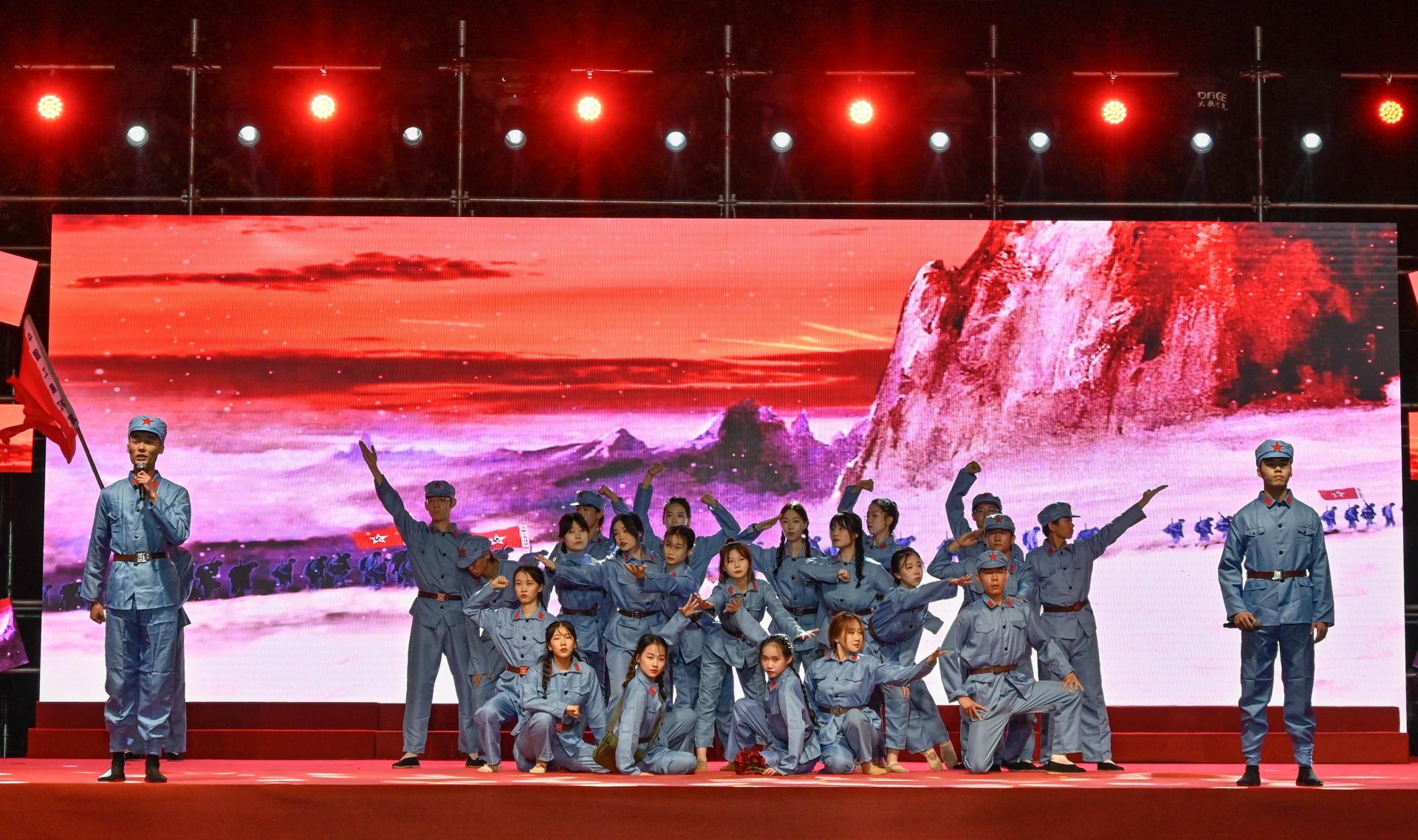 在第三篇章《强国梦》,《我的祖国》以悠扬清亮的歌声厚植爱国情、砥砺强国志。《祖国不会忘记》在国旗护卫队铿锵有力的步伐中踏响报国行。教师海鸥舞蹈团倾情演出《九儿》,生动诠释中华儿女的炽热爱国情。校友、在校生代表《向母校报到》集体献词,传递出身为青科大人的自信,在青科大德智体美劳全面发展的决心,日后为民族复兴贡献力量的豪迈,镌刻下“今天我以赤子之心向母校报到、明天我以栋梁之才向母校报告”的铮铮誓言。