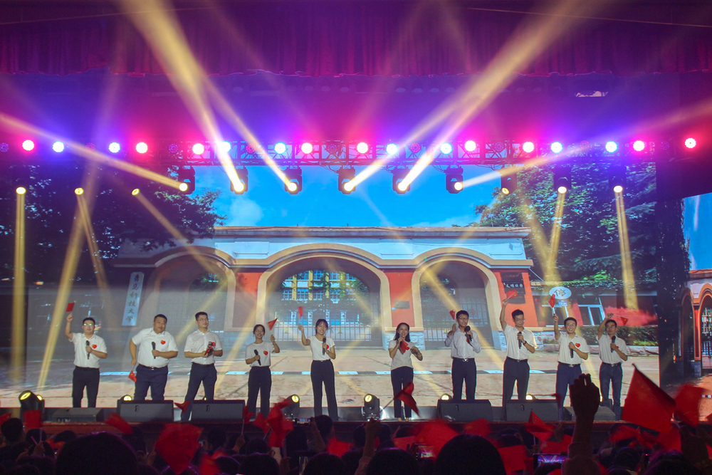 晚会分为《科大情》《奋斗路》《强国梦》三个篇章,共演出三场,累计500余名师生通过歌曲、舞蹈、音画诗等形式庆祝中国共产党成立100周年和庆祝伟大祖国72周年华诞,为全校10000余名新生送上祝福。整场晚会讲述了“精彩纷呈、触动灵魂”的科大故事,传递了“爱校荣校、奋斗成才”的正能量,唱响了“请党放心、强国有我”的主旋律,为全体2021级新生呈现了一场“有魂、有料、有彩” 的思政大课。