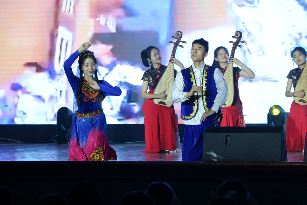 学校各相关职能部门、学院负责人,教师代表,校学生会、研究生会轮值主席及2021级全体新生现场观看了晚会,高密校区和中德校区师生通过线上直播观看演出。