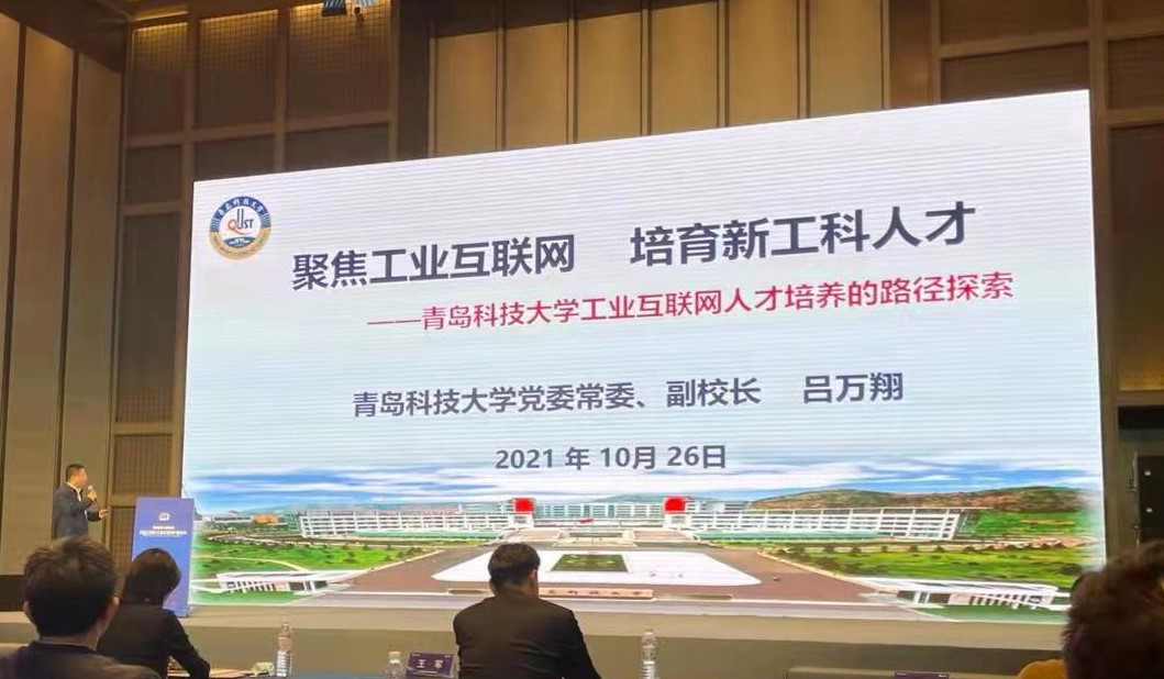 吕万翔做了《工业互联网人才培养体系建设路径探索》主题演讲。主要从学校和青岛工业互联网学院的概况、工业互联网+新工科带给我们的机遇与挑战、工业互联网时代新工科人才培养实践与思考三个方面进行了介绍和分析。