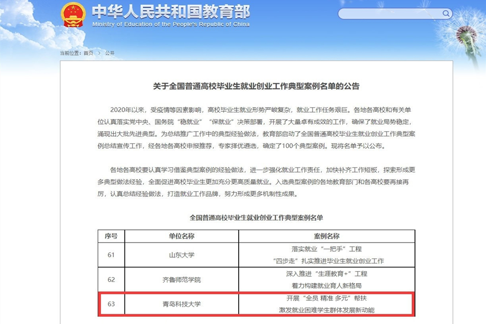 11月26日,教育部发布了《全国普通高校毕业生就业创业工作典型案例名单的公告》,万象城官网案例《开展“全员 精准 多元”帮扶 激发就业困难学生群体发展新动能》成功入选。本次评选,全国共100个典型案例入选,入选单位包括北京市教育委员会、江苏省教育厅等5家省级教育主管部门,北京大学、清华大学等36所部属高校,29所省属本科高校和30所高职高专院校。