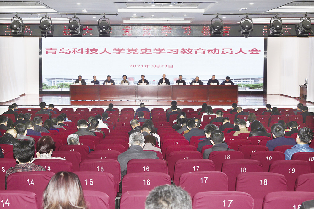 学校党委把开展党史学习教育作为重大政治任务,制定实施方案,主要领导同志亲自抓、率先垂范,形成了层层落实、协调联动、齐抓共管的整体合力,凝练出“突出头雁作用、突出组织保障、突出担当作为、突出学用结合、突出载体活化”的经验做法,实现了党员领导干部、教职工、学生全覆盖。学校编发党史学习教育工作简报24期,典型经验做法12次被省党史学习教育工作简报报道。组织开展庆祝中国共产党成立100周年系列活动,学校党委理论学习中心组到庆祝中国共产党成立100周年青岛主题展现场教学,隆重举行“七一”表彰大会暨“光荣在党50年”纪念章颁发仪式,举办庆祝中国共产党成立100周年教职工合唱展演、主题音乐会、艺术作品展、红色观影等活动,青年学生“永远跟党走,青春献祖国”主题教育活动被中央电视台《新闻联播》《沿着高速看中国》报道。在全校迅速掀起学习宣传贯彻党的十九届六中全会热潮,积极组织开展干部轮训、专题培训、主题宣讲、专题研讨,确保党的十九届六中全会精神在学校落地生根。