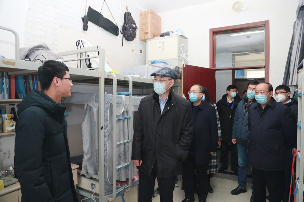 校领导一行先后来到崂山校区和四方校区,全面、细致地检查指导了校门口、志愿服务站、核酸检测场地、学生宿舍、食堂等环节的工作落实情况。学生处、研究生院、后勤处、保卫处、校团委等部门负责人汇报了学生返校和校园疫情防控情况。陈克正对相关部门所做的工作表示肯定,并勉励大家慎终如始,以高度负责的态度,用心用情持续做好返校报到接待和服务保障工作,确保春季学期开学平安有序。