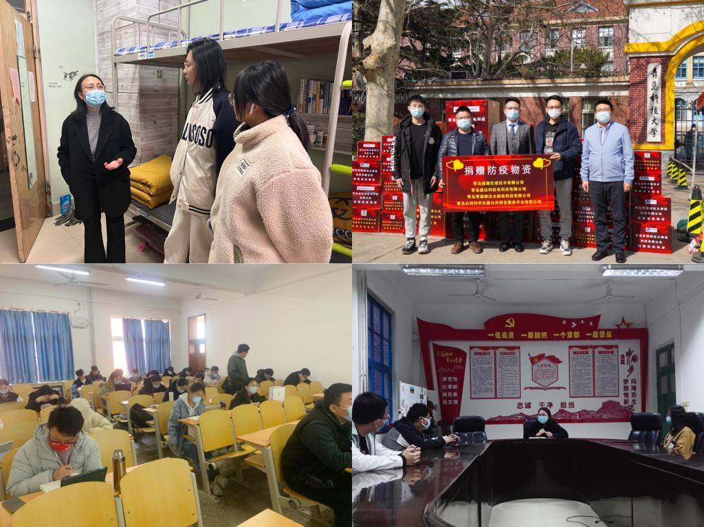 海洋学院严格贯彻落实学校进一步做好疫情防控工作动员部署会精神,班子成员每天一次线上会议,迅速传达防控工作要求,明确信息排查、疫情监测、在线教学、安全管理、舆情处置等各项职责。学院积极联系6家企业,目前共捐赠口罩3万个、医用手套1万副、防护服1200套、以及免洗凝液、酒精等防疫物资,用于疫情防控一线,保障师生安全健康。辅导员每天进课堂、进宿舍,通过网格化管理,关注学生思想动态,维护教育教学秩序,保障学生安全稳定。班主任召开线上班会,针对不同年级开展主题宣传,督促学生提高学习质量。学生党员、骨干组成四支“战疫先锋队”,课堂、宿舍、实验室、核酸检测的现场都有他们的身影,每周组织一次宿舍消杀,为保障学院平稳运行奉献力量。院领导常态化开展学生座谈会,宣讲防控要求,掌握学生诉求,鼓励学生聚焦学习。学院发挥全员优势,落实落细落小各项防控措施,形成了横向到边、纵向到底、全覆盖、无死角的疫情防控工作格局。