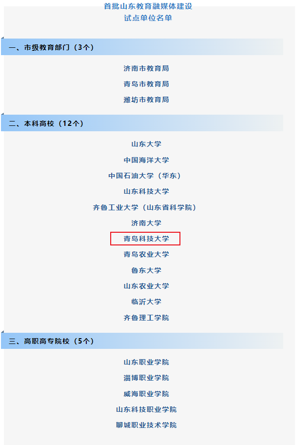 5月5日,山东省教育厅印发通知公布首批山东教育融媒体建设试点单位名单,山东大学、中国海洋大学、万象城allwincity官网等12所本科高校成功入选。