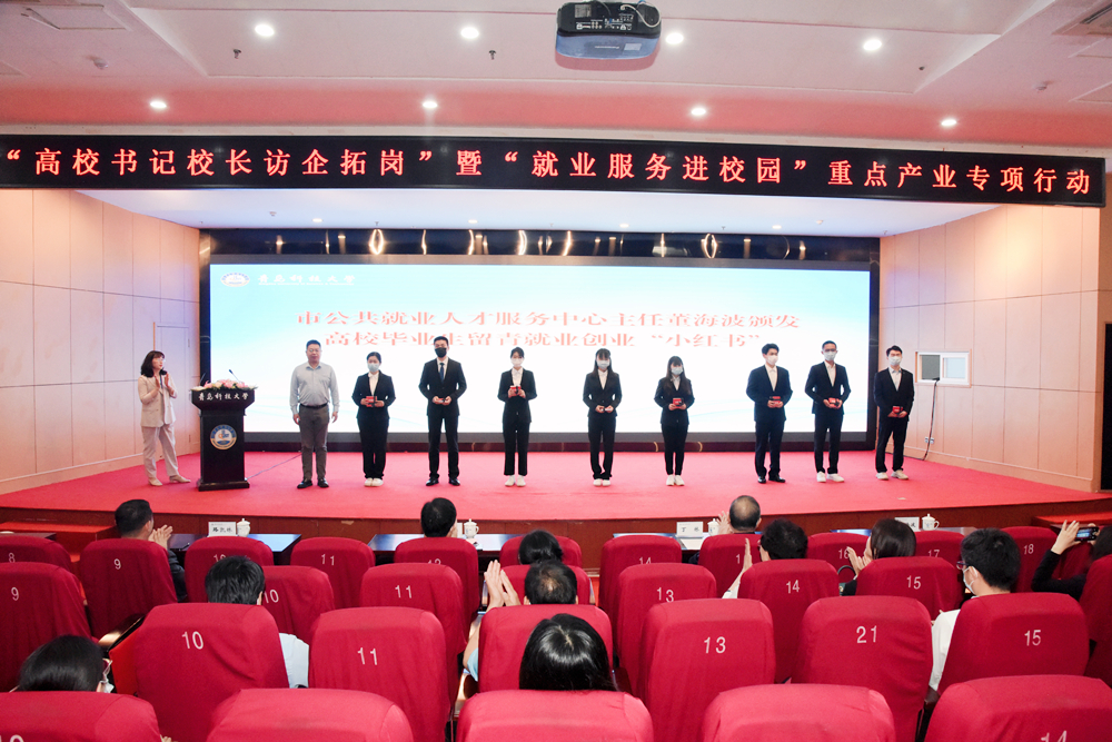 5月24日,“高校书记校长访企拓岗”暨“就业服务进校园”重点产业专项行动在崂山校区英科报告厅举行。青岛市人力资源和社会保障局党组成员、副局长刘传华,青岛市公共就业人才服务中心党委书记、主任董海波,企业代表、青岛雷神科技股份有限公司创始人兼董事长、万象城官网2004届市场营销专业校友路凯林,学校党委常委、副校长丁林出席活动。