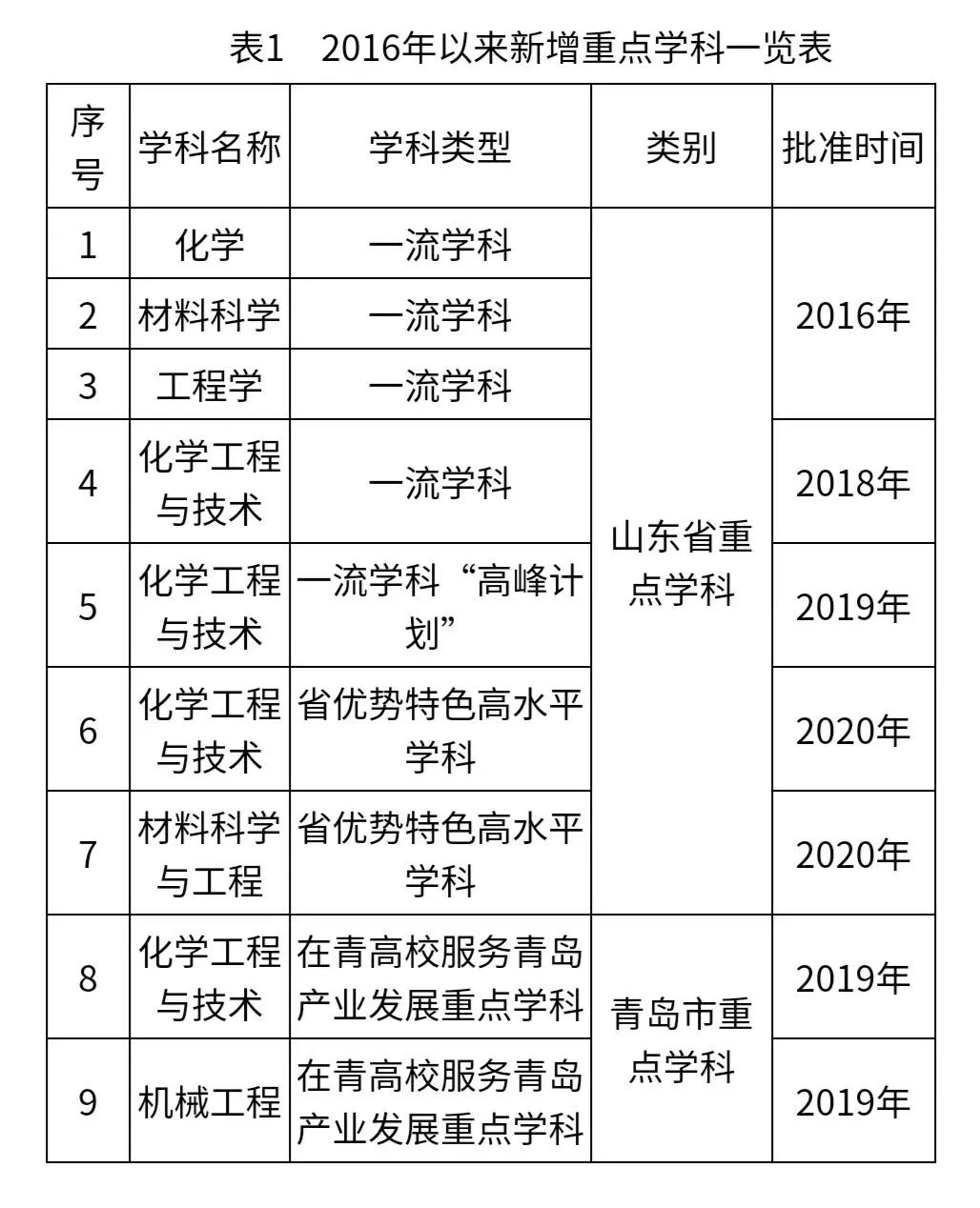 2016年化学、材料科学、工程学3个学科入选山东省重点建设“一流学科”行列;2018年化学工程与技术入选省一流学科,并于2019年入选省一流学科“高峰计划”A类学科;2020年化学工程与技术、材料科学与工程2个学科入选山东省“优势特色”类高水平学科,学校入选山东省“强特色”类高水平大学;2019年化学工程与技术、机械工程入选在青高校服务青岛产业发展重点学科(表1)。目前万象城官网US News世界学科排名上榜7个学科,化学工程与技术位列第102位。在全国第四轮学科评估中,学校有9个学科进入前70%,其中化学工程与技术为B+,省属高校工科唯一(表2)。