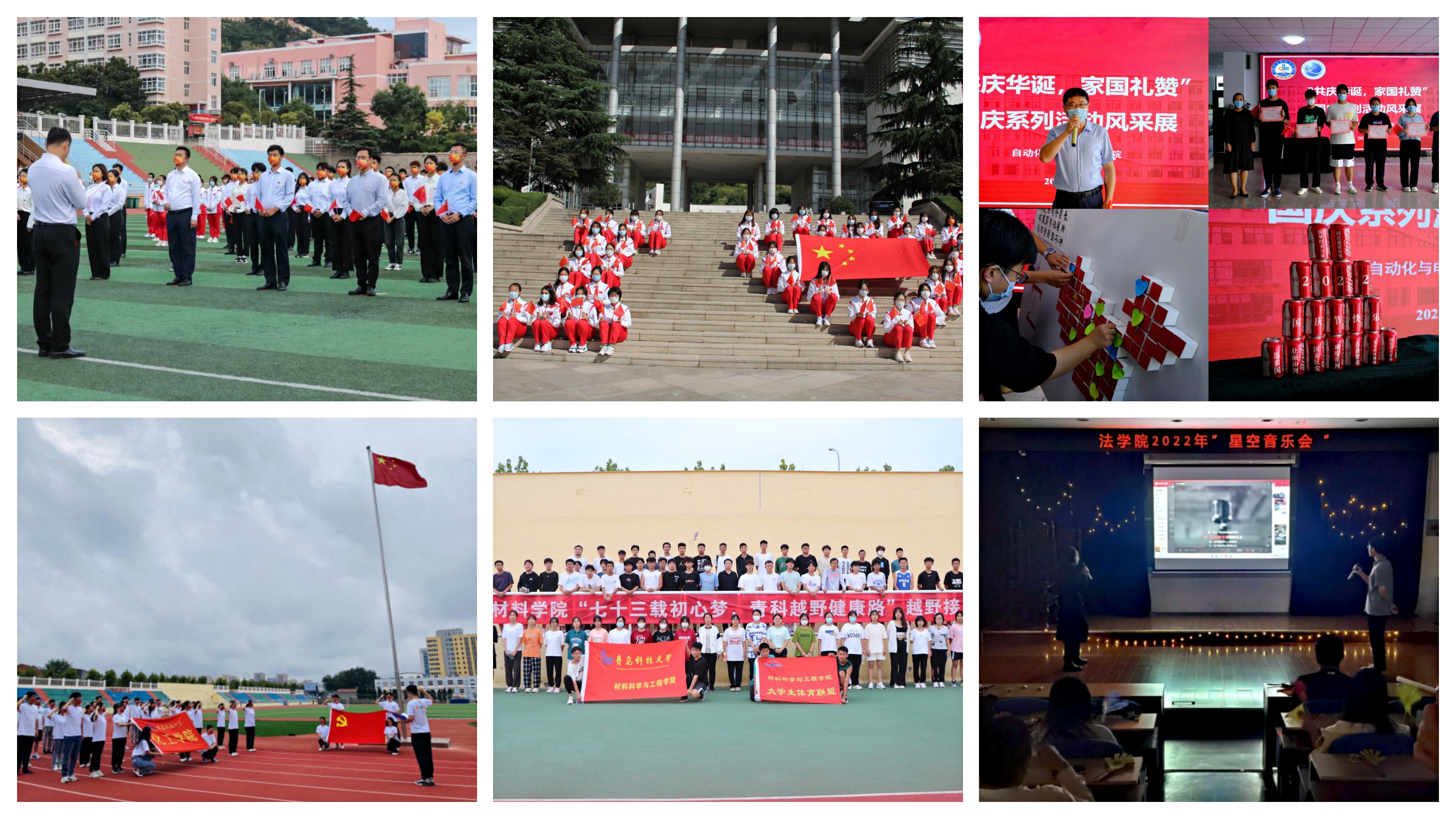 五星红旗冉冉升起,清澈的爱只为中国。值此国庆佳节之际,全校学工队伍认真贯彻落实学校第十一次党代会精神和学校党委决策部署,坚守立德树人初心,牢记为党育人、为国育才使命,通过全员到岗、全过程陪伴、全方位教育,为青科学子营造了热情、温暖、安全的国庆氛围;通过组织丰富多彩的主题活动,让青年学生感受到深深的家国情,浓浓的爱国心,他们用心用力用情诠释责任担当,传承科大家风,以昂扬向上的精神面貌迎接党的二十大胜利召开。