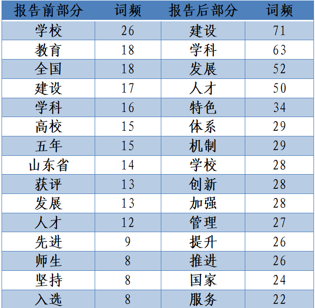 表3 两次报告词频对比