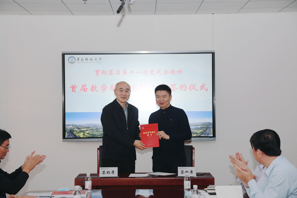 为贯彻落实学校第十一次党代会精神,深入推动学校人才团队建设和有组织科研工作走实走深,10月18日下午,学校在崂山校区综合服务楼3015会议室举行首届教学科研团队上岗签约仪式。学校党委书记李兴伟,校长陈克正,党委常委、副校长吕万翔,党委常委、副校长罗细亮出席仪式。