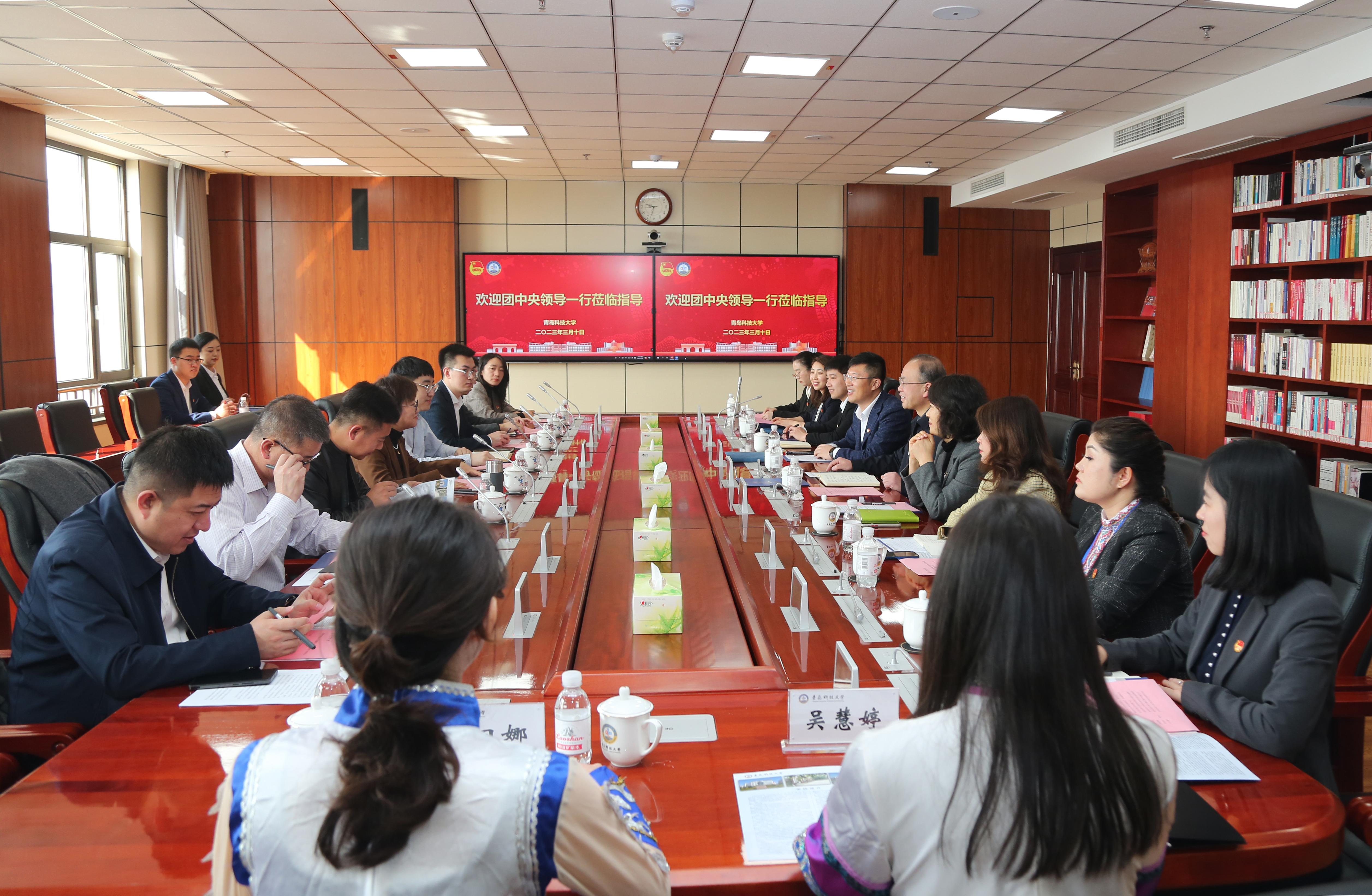 3月10日,团中央统战部任晓蓉一行来校调研学校共青团开展铸牢中华民族共同体意识、服务海外留学生和归国青年相关工作。学校党委书记李兴伟会见了任晓蓉一行。学校党委常委、副校长丁林,党委常委、统战部部长秦姣陪同调研。共青团山东省委、共青团青岛市委相关负责人、部分驻青高校团委负责人参加调研。