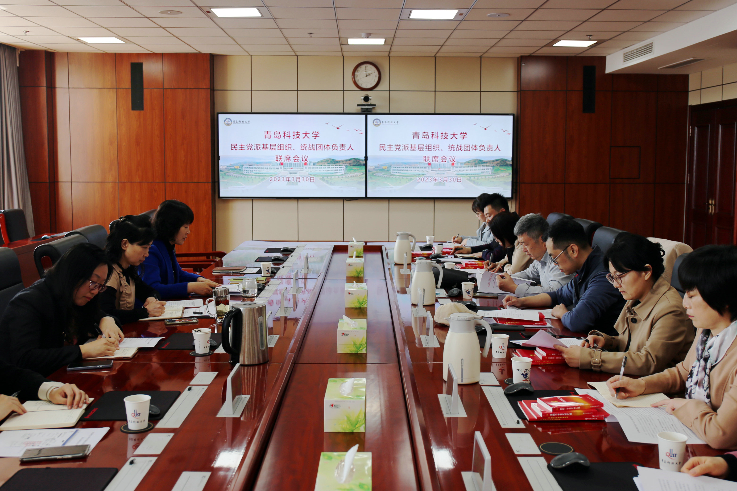 3月30日,学校民主党派、统战团体负责人联席会议召开。学校党委副书记沈文青出席会议并讲话,党委常委、统战部部长秦姣主持会议。