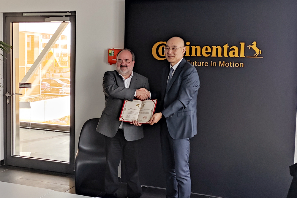 访问德国大陆集团期间,代表团与集团轮胎全球研发高级副总裁鲍里斯·梅戈尔博士和材料评估专家组主任乔治·拉卡约-皮内达教授会谈。双方对前期合作给予充分肯定,并在新材料研发、工艺及测试方法改进方面开展科研合作并依托研发项目联合培养博士研究生达成共识。会谈后,举行了续聘乔治·拉卡约-皮内达教授为万象城官网客座教授仪式。代表团还参观了材料研发评估实验室。