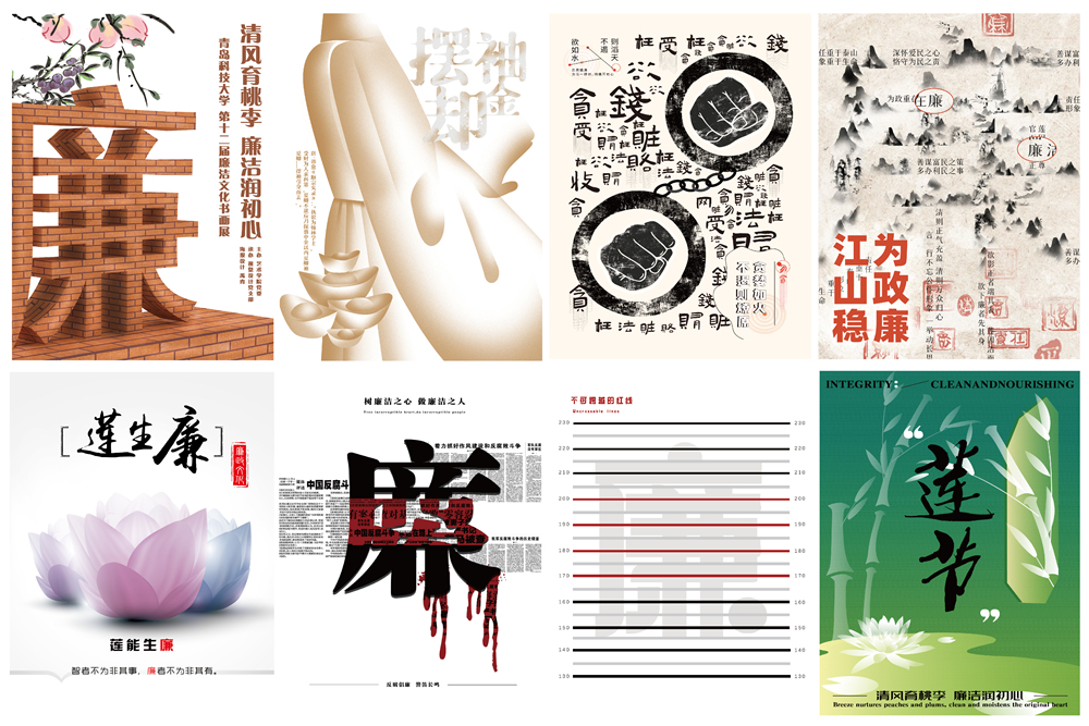 此次廉洁文化书画展以“清风育桃李,廉洁润初心”为主题,共展出54件作品,其中,海报招贴类作品37件,书画类作品17件。展厅内一幅幅构思精巧的作品引发深思。作品主题突出、意境高远、风格迥异、内容丰富,多角度、深层次表达了廉洁文化的丰富内涵。参观者深刻感受了艺术的熏陶、文化的浸染、心灵的洗礼,为树牢廉洁意识、坚守廉洁底线、涵养廉洁清风打下了良好基础,对营造党风政风清正、师德师风清廉、教风学风清朗的校园环境具有重要意义。