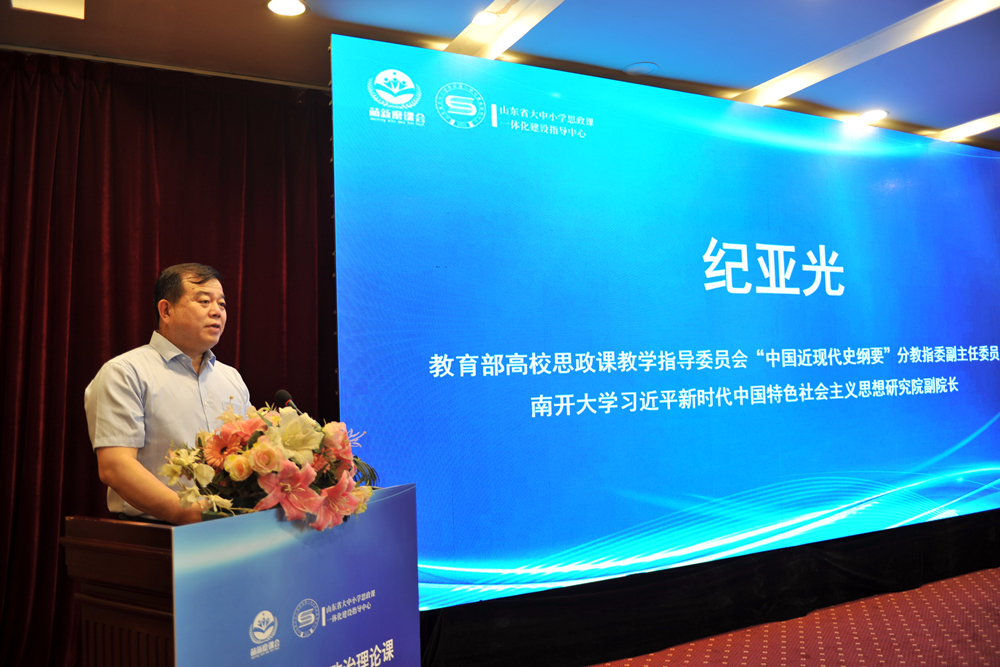 纪亚光代表教育部思政课教指委“中国近现代史纲要”分教指委对活动的举办表示祝贺,他强调,山东省广大青年思政课教师要认真学习、自觉践行习近平总书记在学校思政课教师座谈会上的重要讲话精神,以德立身、以德立学、以德施教、以德育德,争做马克思主义坚定信仰者、忠实实践者和积极传播者,把好“政治关”,把好“教学观”,把好“素质关”,扎扎实实,脚踏实地把教学搞好,把道理讲深、讲透、讲活,让学生真心喜爱、终身受益、毕生难忘。