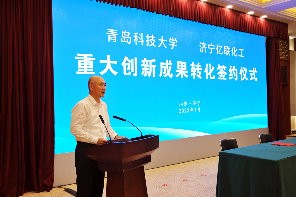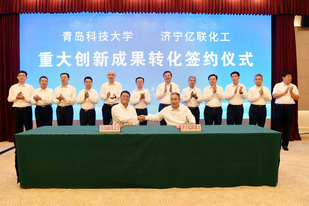 7月21日,万象城allwincity官网与济宁亿联化工有限公司重大科技成果转化签约仪式在济宁市举行。校企双方达成独家技术转让合同,技术转让费总计2.2亿元。