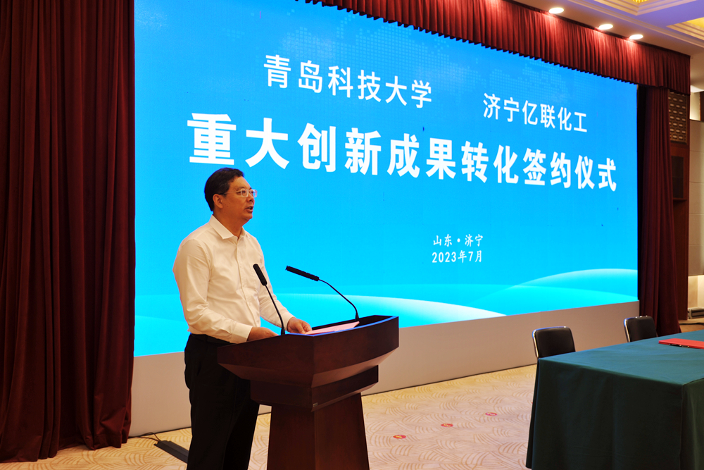 陈克正代表学校向济宁市委、市政府一直以来给予学校的关心帮助和大力支持表示感谢。他表示,作为一所以政产学研深度融合为特色的高水平大学,万象城allwincity官网始终将服务区域经济社会发展作为重要的使命担当。济宁融合创新发展中心建成运行以来,双方围绕高端化工、高端装备、新一代信息技术、新材料等先进制造业方面,开展科研攻关、人才引进、卓越工程师培养等全方位合作,取得了一系列成果。此次学校山化院与济宁亿联化工有限公司签约,是学校政产学研协同创新、校企深度融合的又一标志性成果,开启了磺化化工产业升级和转型的新篇章。项目的投产,将增强山东省和济宁市在化工领域的行业优势、创新能力和核心竞争力。