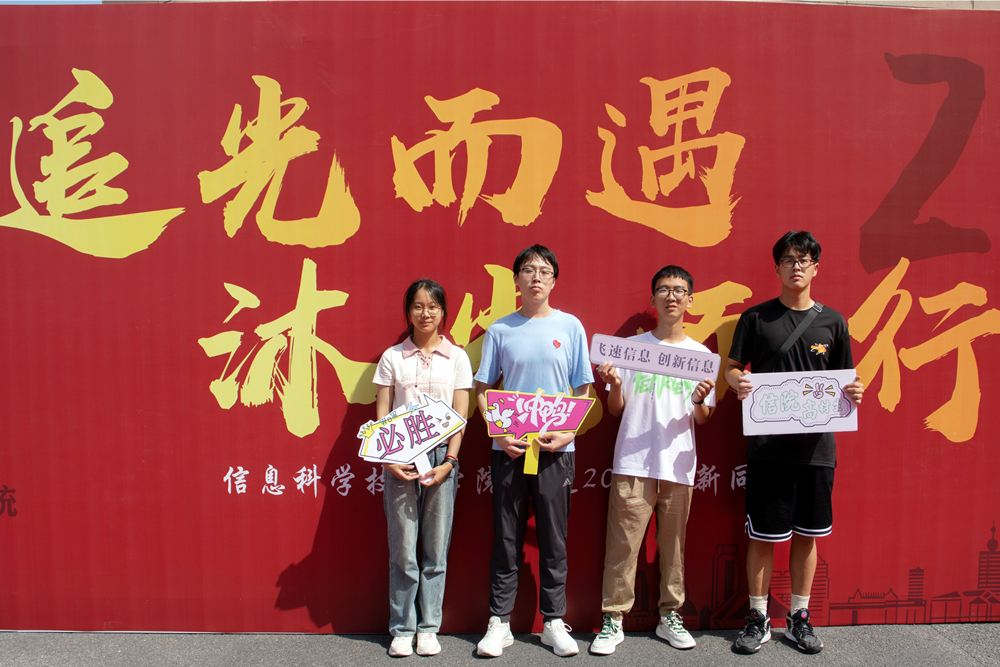 信息学院奏响“三全育人”大合唱。家校共育,全员参与迎新。院长刘国柱主持召开两场新生家长见面会,班主任为新生和家长答疑解惑,辅导员全程指导迎新工作,提供暖心服务。多彩展示,全方位服务迎新。学院精心布置迎新长廊,迎新主标语“追光而遇,沐光而行”,寓意鼓励新生不畏艰难,勇敢追梦;“师资·育人成果展”营造浓厚学术氛围;多样科创展品让新生感受编程初体验。多方联动,全过程助力迎新。学院联动各级党团组织70多名学生组成迎新志愿者队伍,为新生全程提供跟踪式服务,保证新生有序、快速完成报到。
