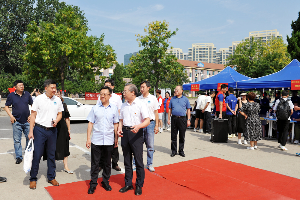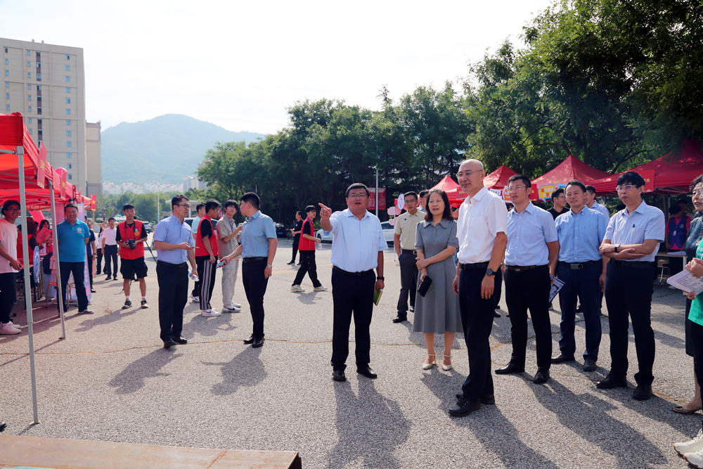 9月2日上午,校领导李兴伟、陈克正、沈文青、丁林、李少远、罗细亮在相关部门负责人的陪同下,分别来到四方校区、崂山校区、中德校区、高密校区查看新生报到情况,与在现场办理报到手续的新生和家长亲切交流,了解各学院、校区迎新部署和特色亮点等,向在迎新一线辛苦付出的师生员工表示慰问,并希望各部门、学院、校区用心、用情、用力服务好新生,助力新生顺利开启大学生涯,为新生入学和新学期学习生活创造良好的条件和环境。